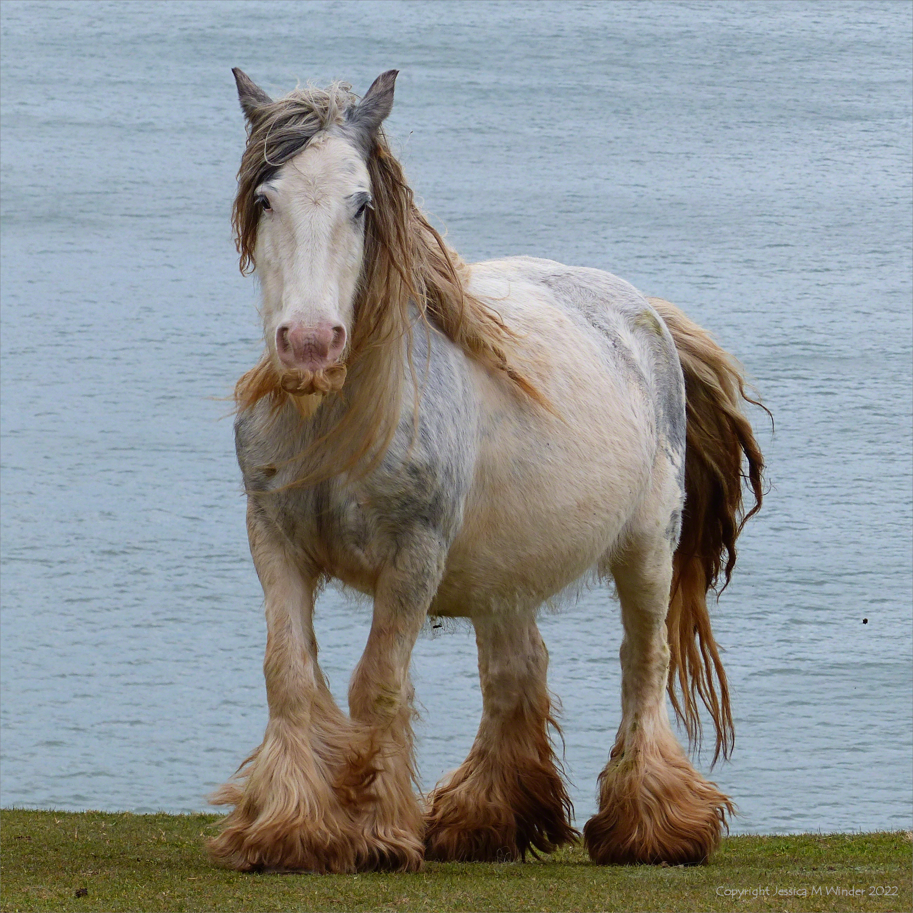 One of many free-roaming ponies and horses on the Gower peninsula near Swansea. There is a small herd of this type browsing on the headland near Rhossili village on the way to the coast guard look-out. I wish I knew what breed they are. They are magnificent beasts, much heavier and hairier than the ponies you normally see. Some of them are in foal or have recently foaled.
