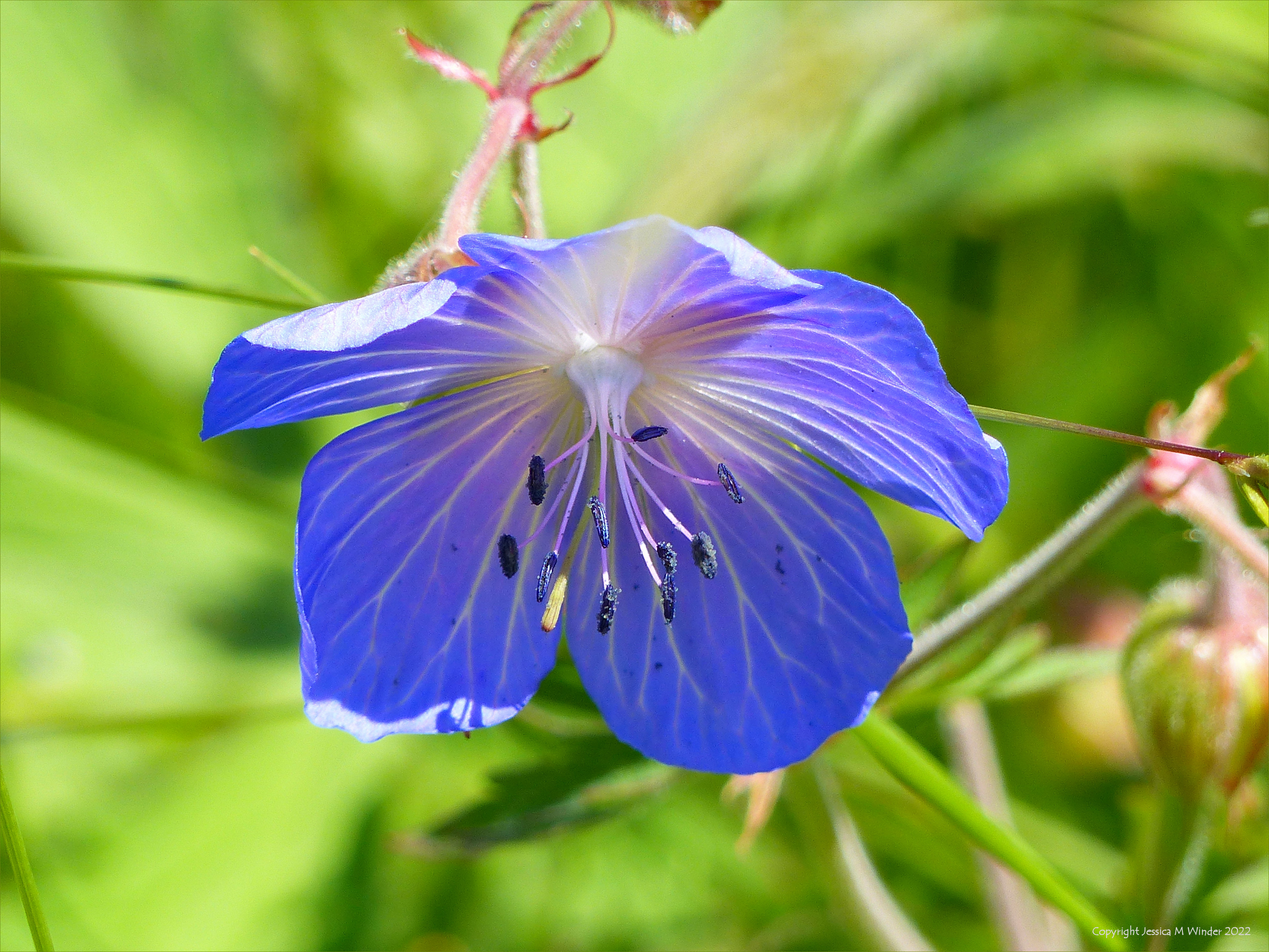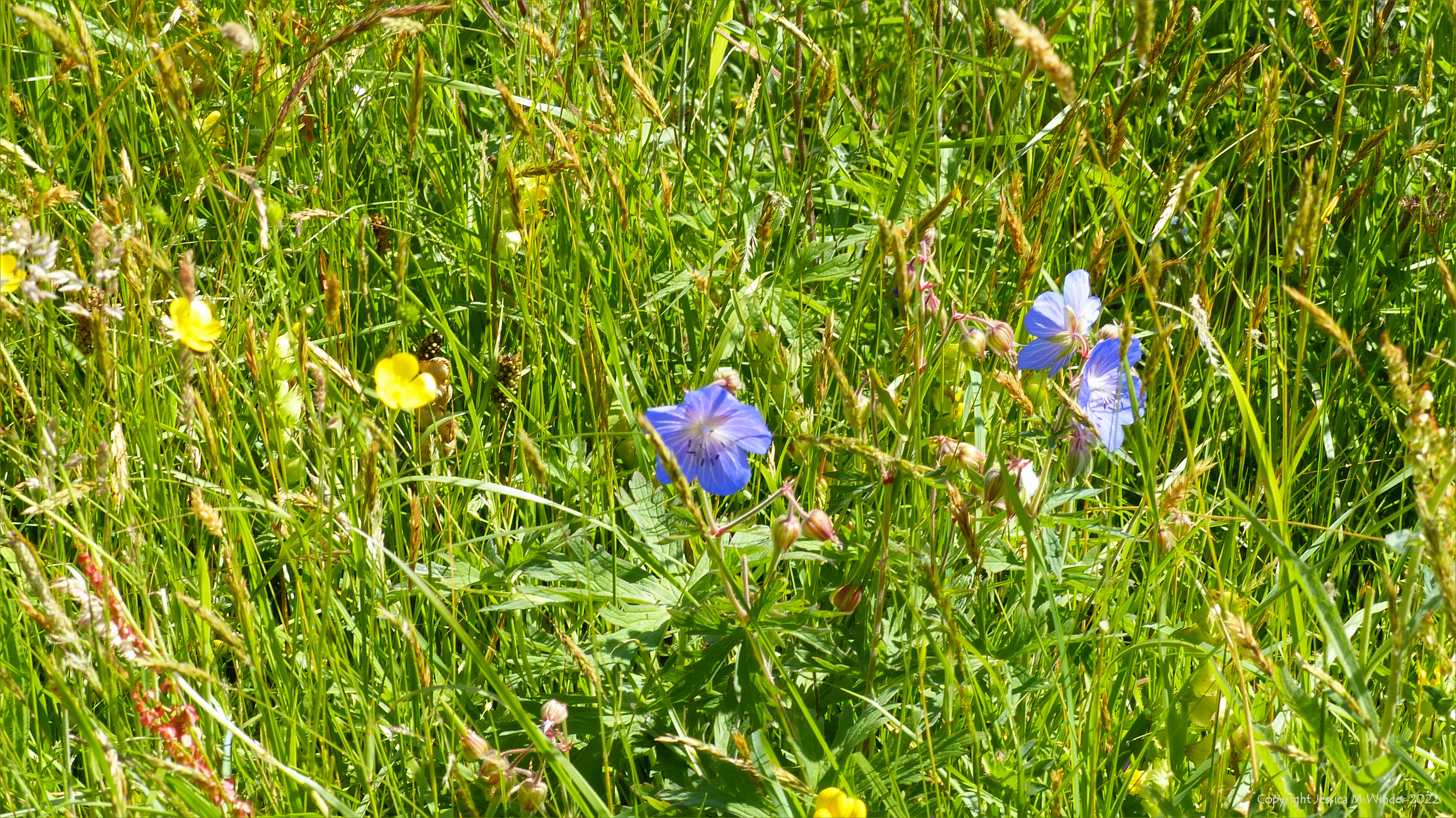 Meadow Crane’s-bill (Geranium pratense) growing in one of the fields at Higher Ground Meadow near Corscombe in Dorset.