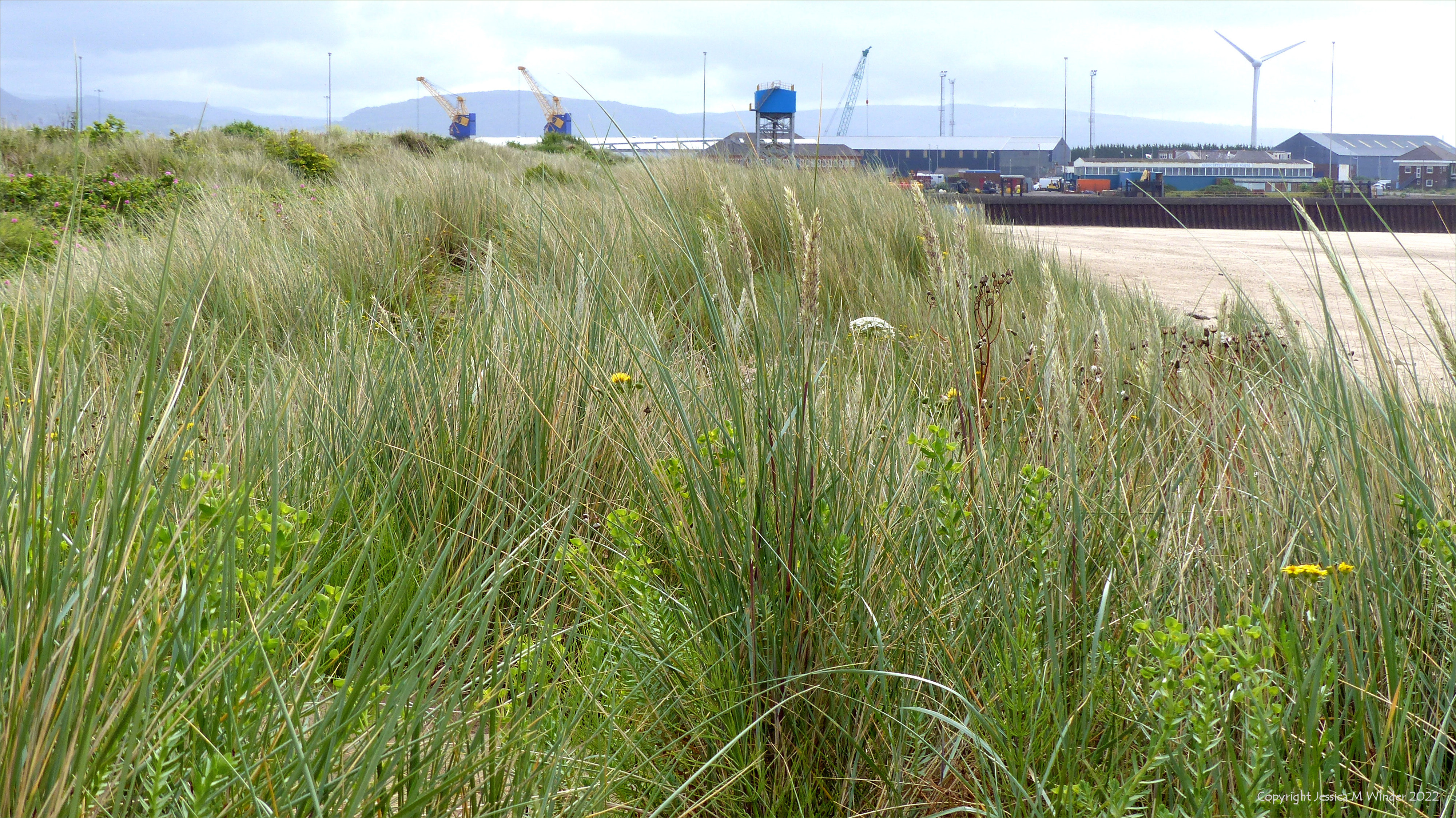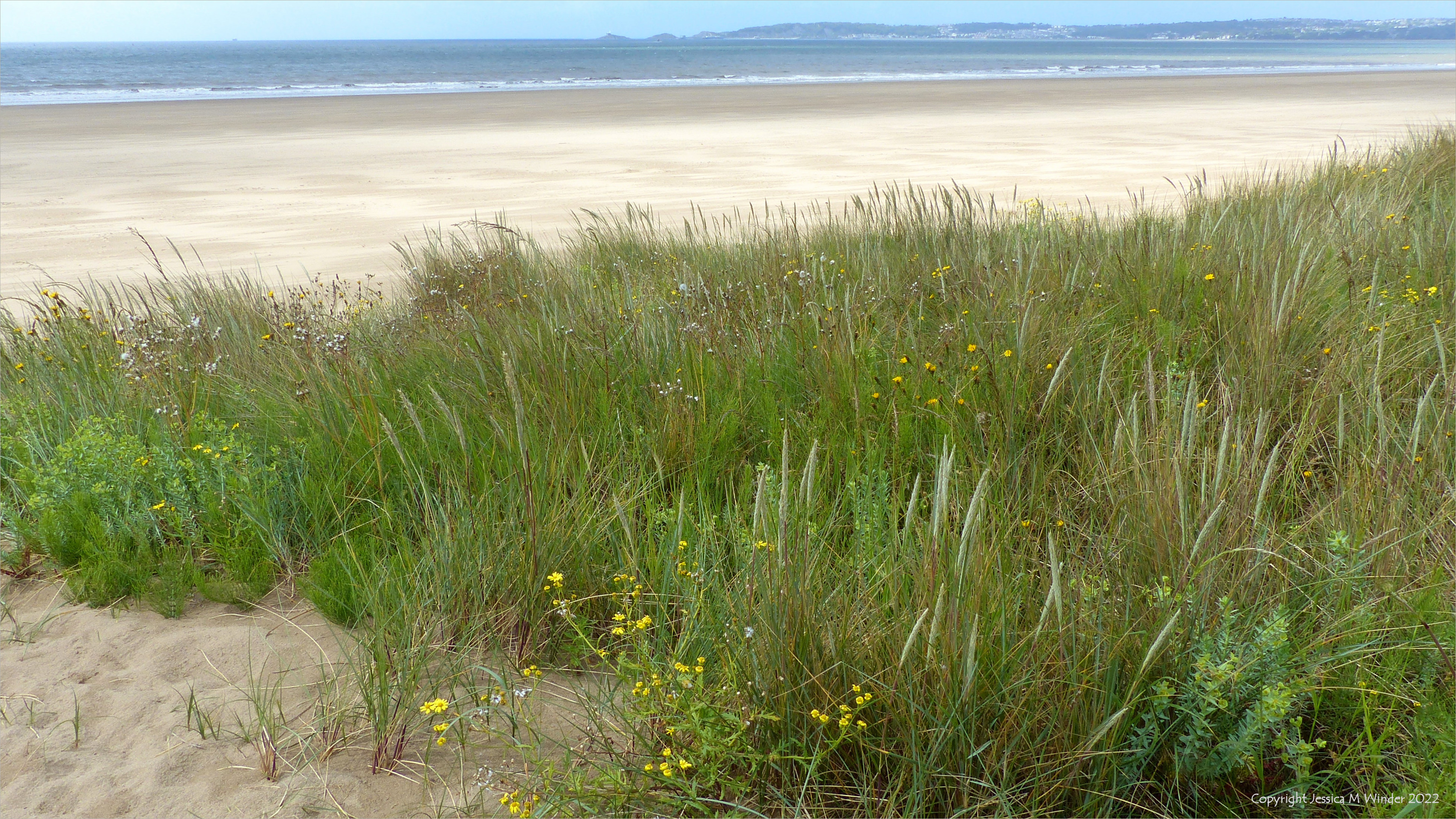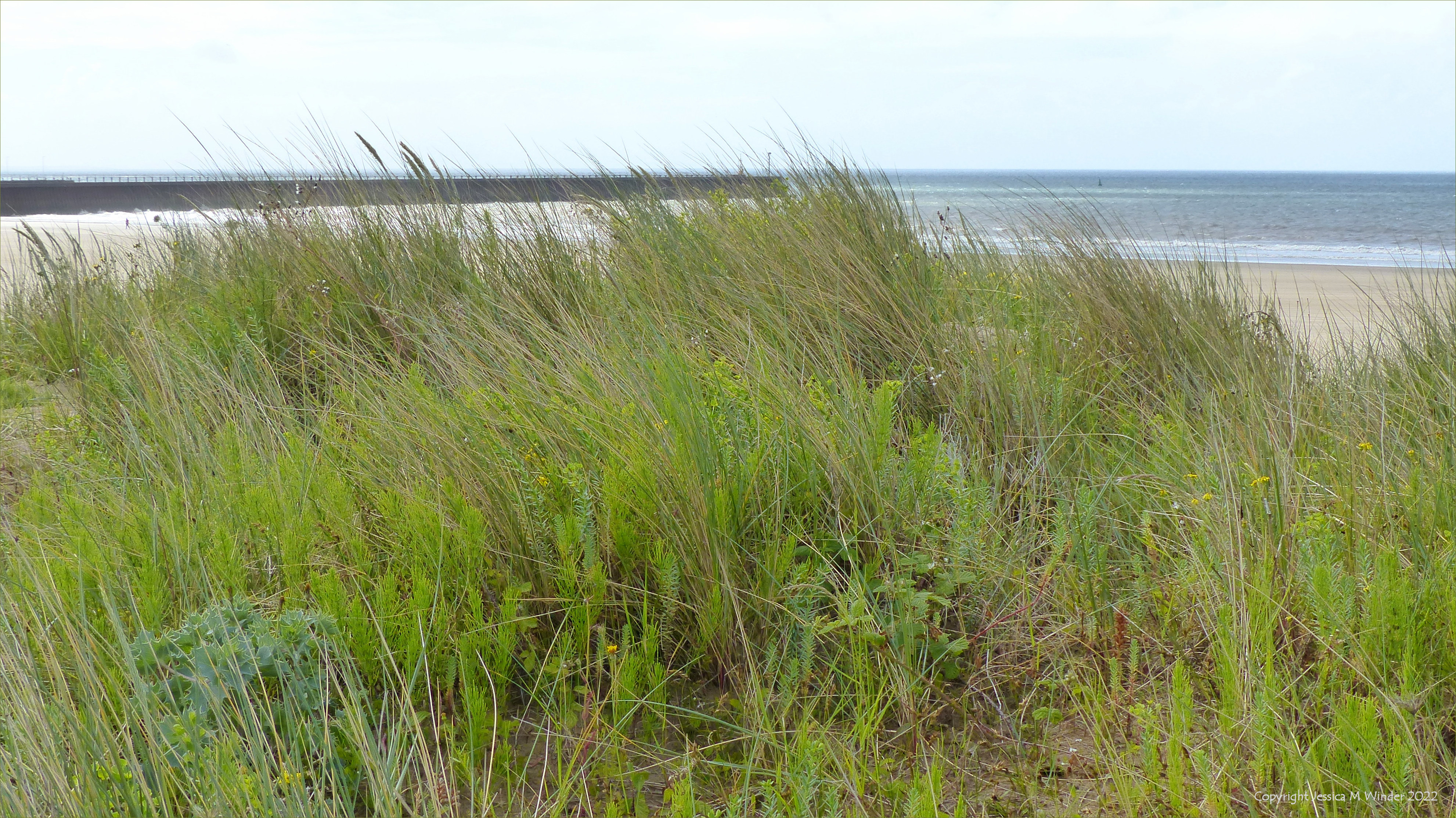 The dunes near the City of Swansea provided an excellent vantage point to view the surroundings and vast sandy beach while at the same time allowing me the pleasure of discovering plants and associations of plants that were new to me. These images show some of the general views, taken on a rather unsettled and blustery early summer morning.