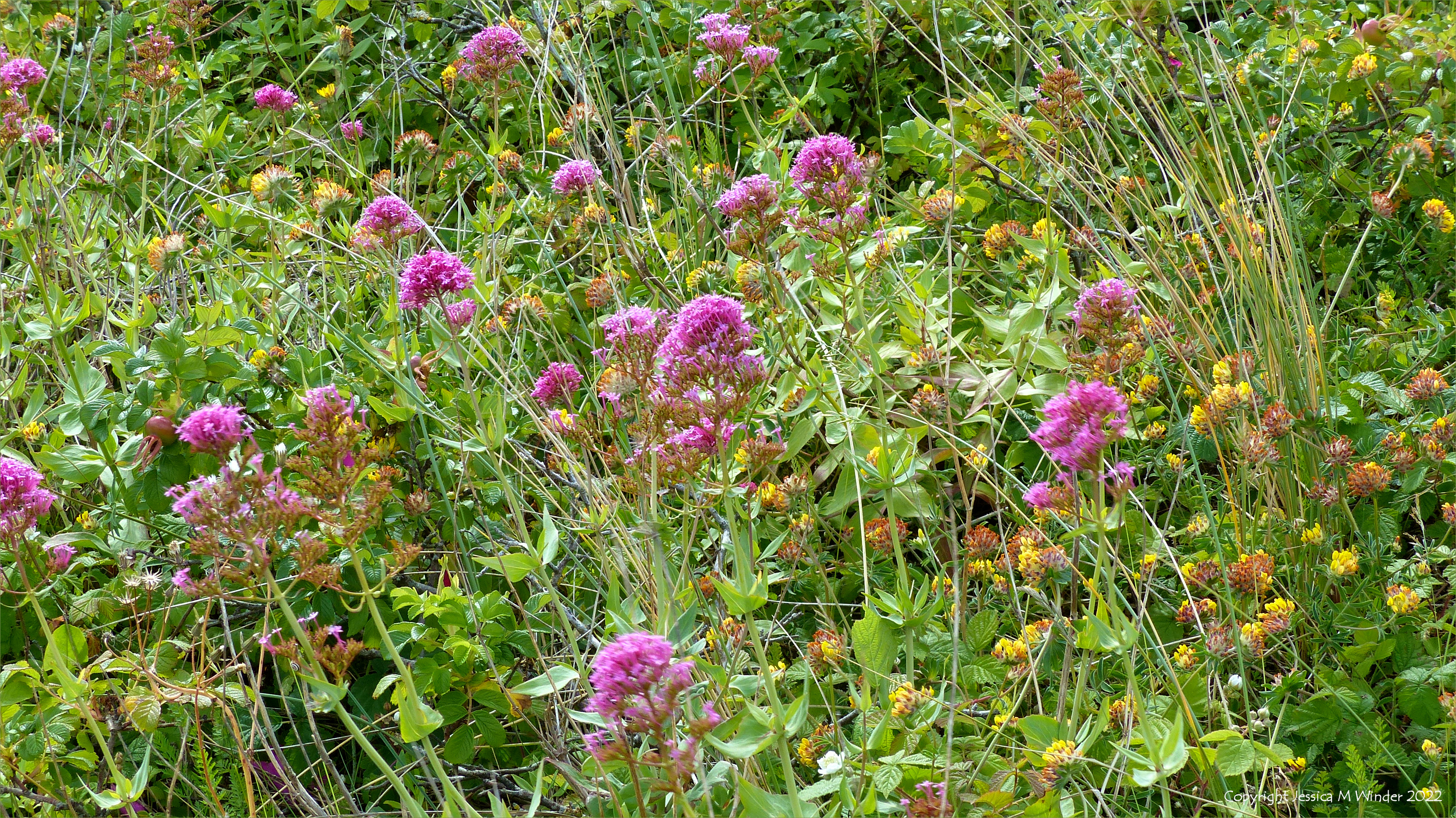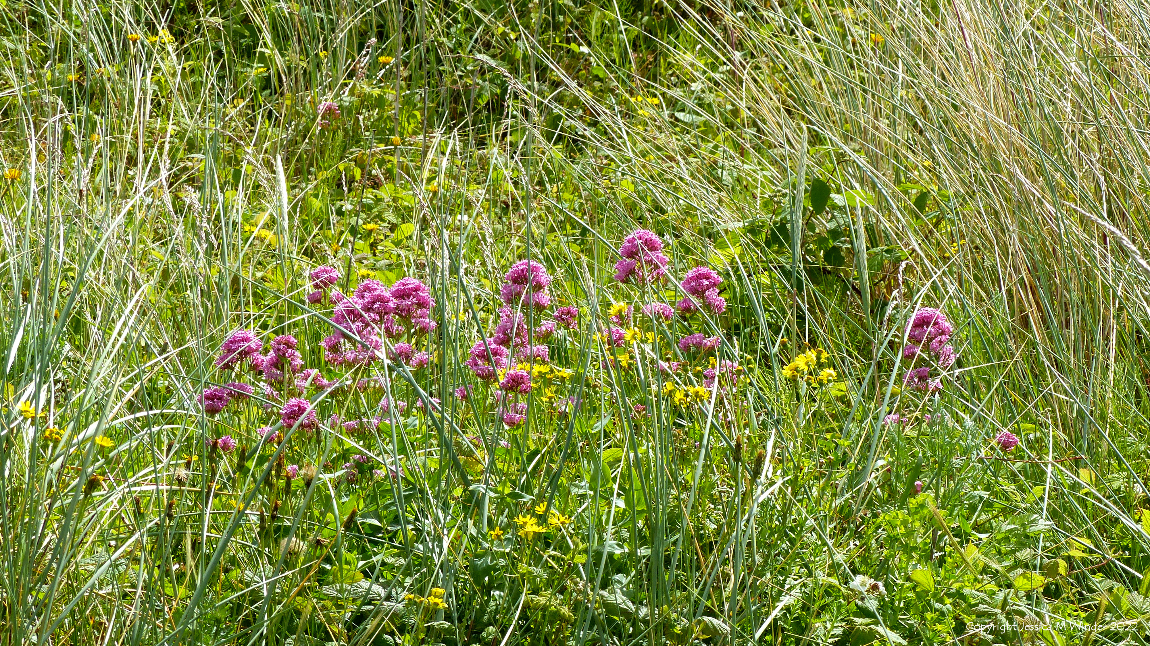 These pictures show Red Valerian (Centranthus ruber) – which actually has dense terminal spikes of deep pink (not red) flowers that can also be white – growing on the dunes at Swansea Bay. It is an introduced species that has naturalised and is not the same as our native Common Valerian (Valeriana officinalis) which has very much paler pink flowers and not so much branching of the stems.