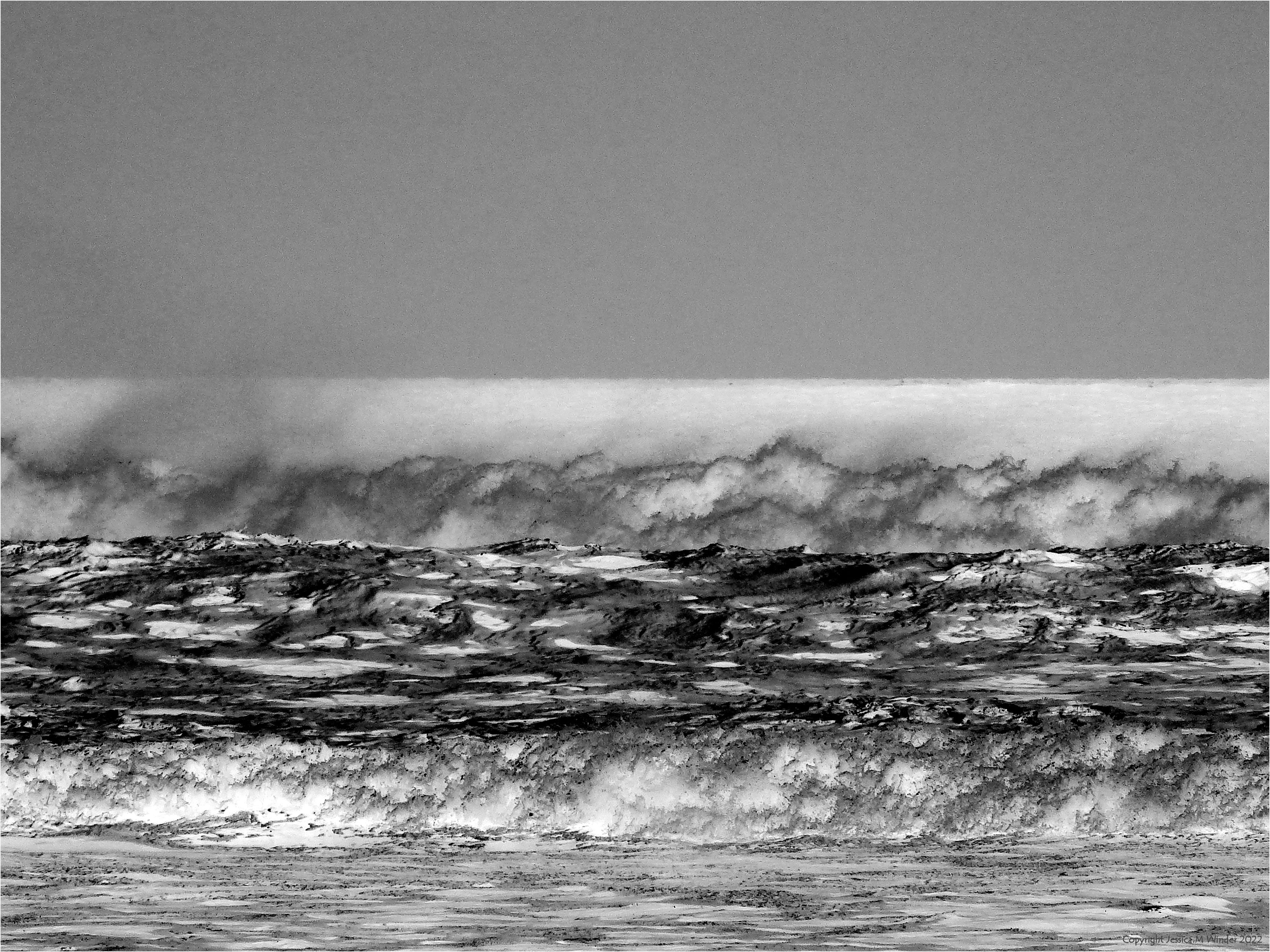 The photographs have been digitally altered and recoloured to emphasise the texture and the ‘feel’ of the waves. I thought it underlined how dramatic they were. A bit of artwork.