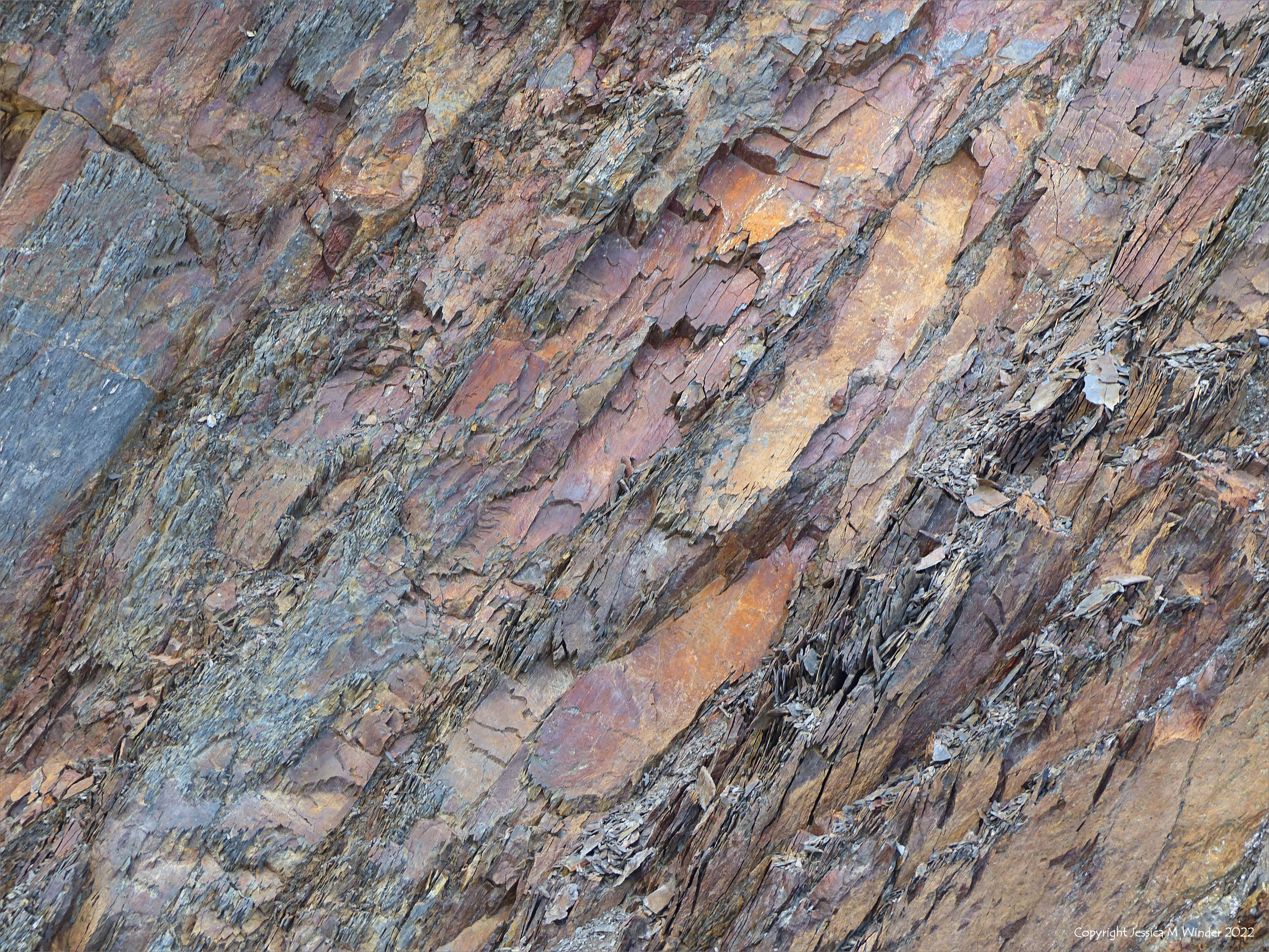 Image 6 of a series of photographs taken at a coastal outcrop of mudstone rocks belonging to the Silurian period Ross Brook Formation on the Northumberland Strait in Nova Scotia, Canada.