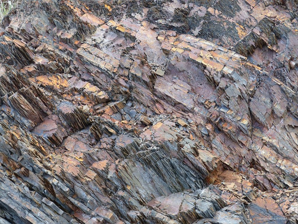 Image 23 of a series of photographs taken at a coastal outcrop of mudstone rocks belonging to the Silurian Period Ross Brook Formation, in Nova Scotia in Canada.