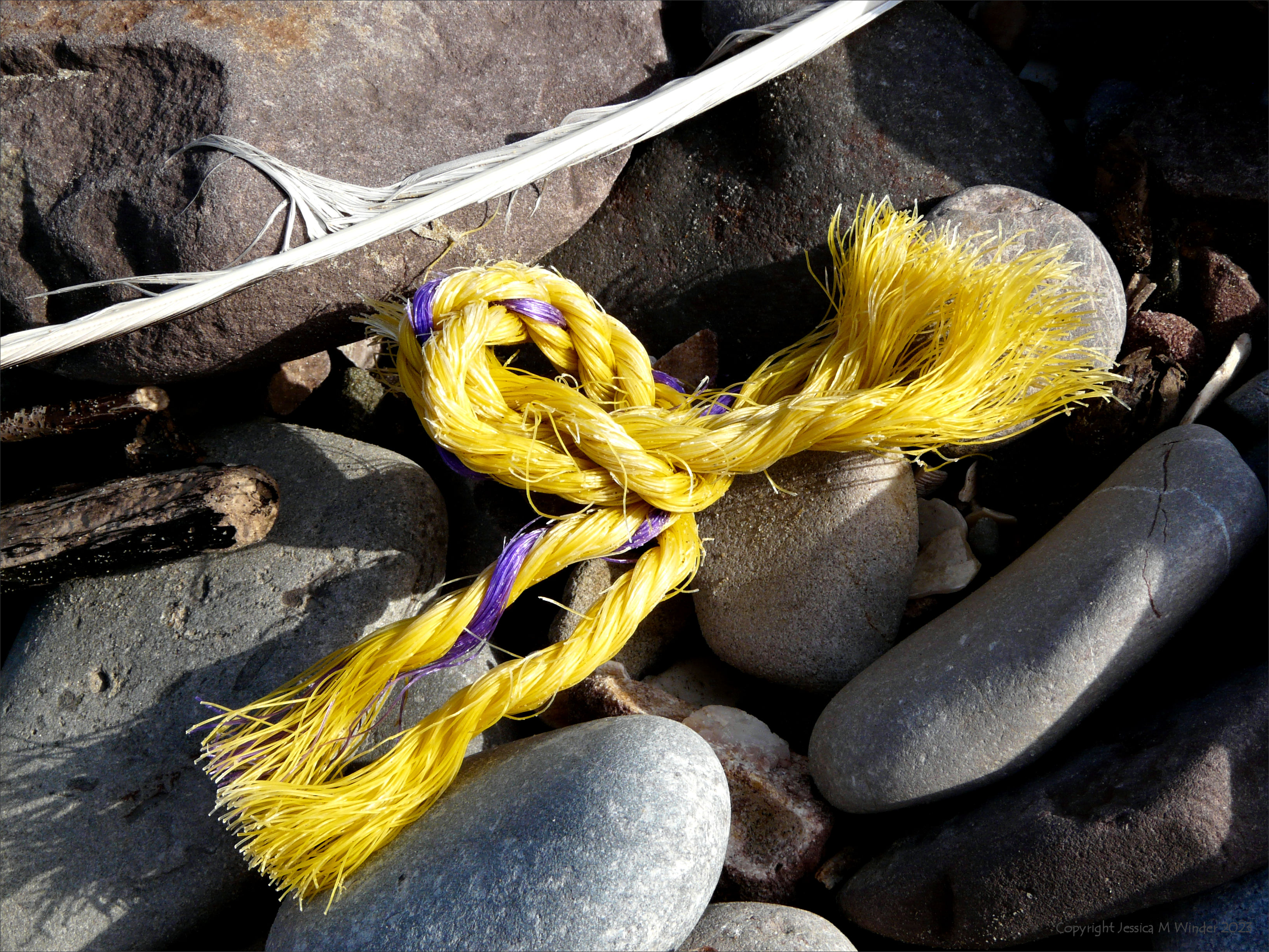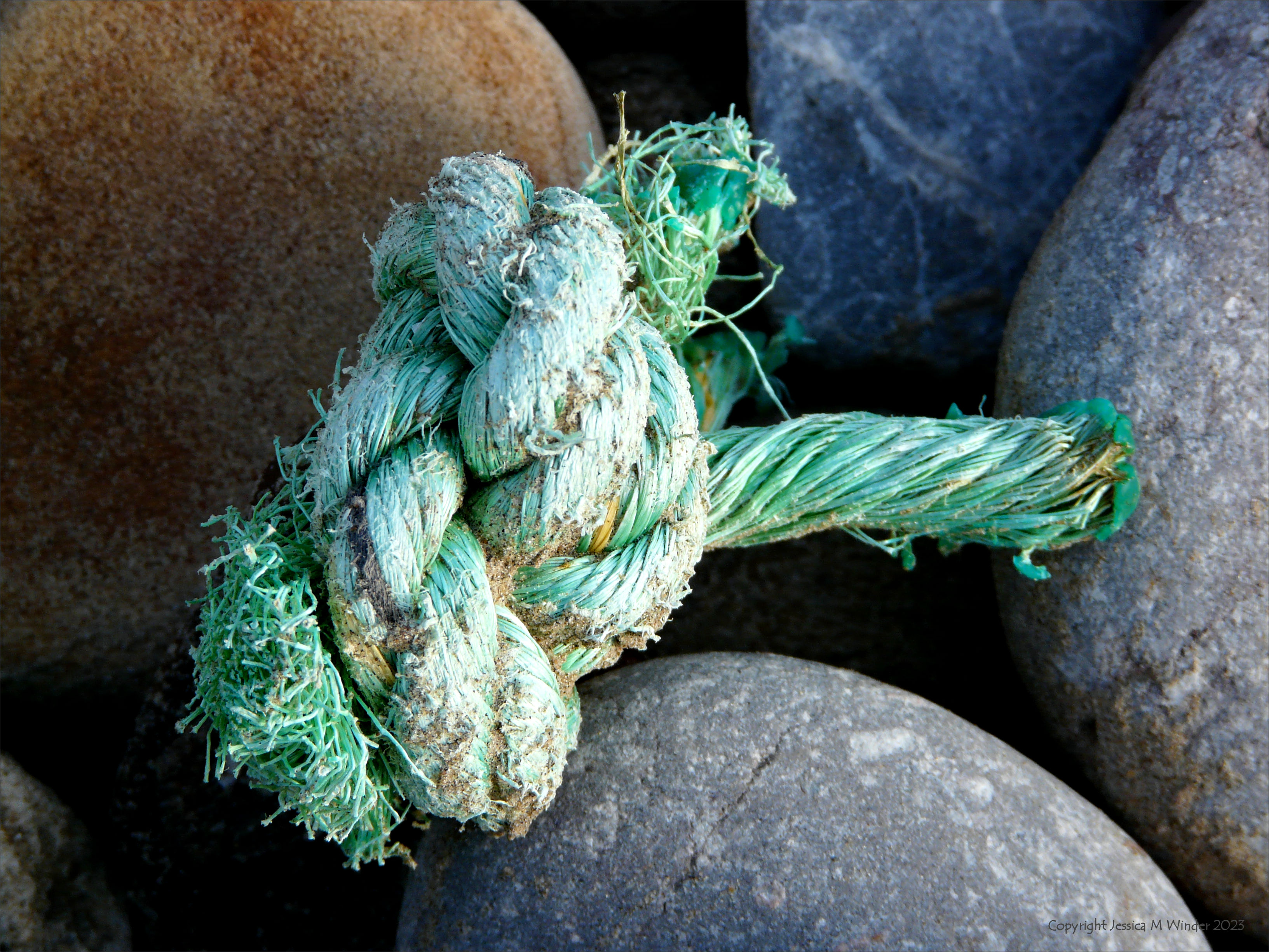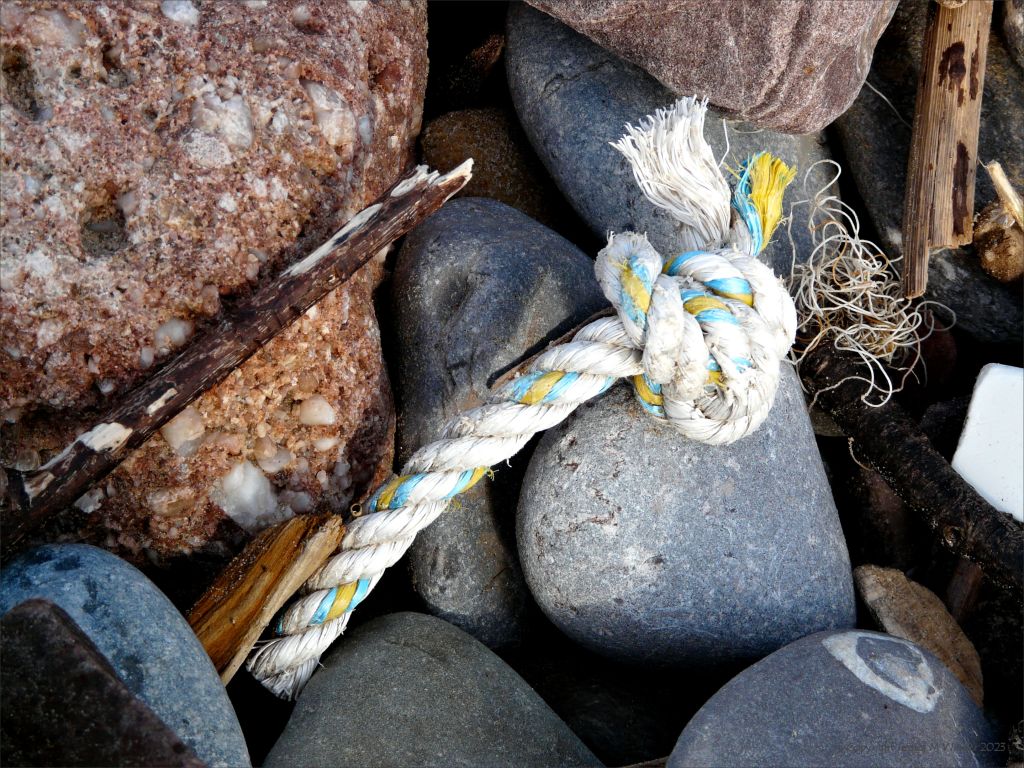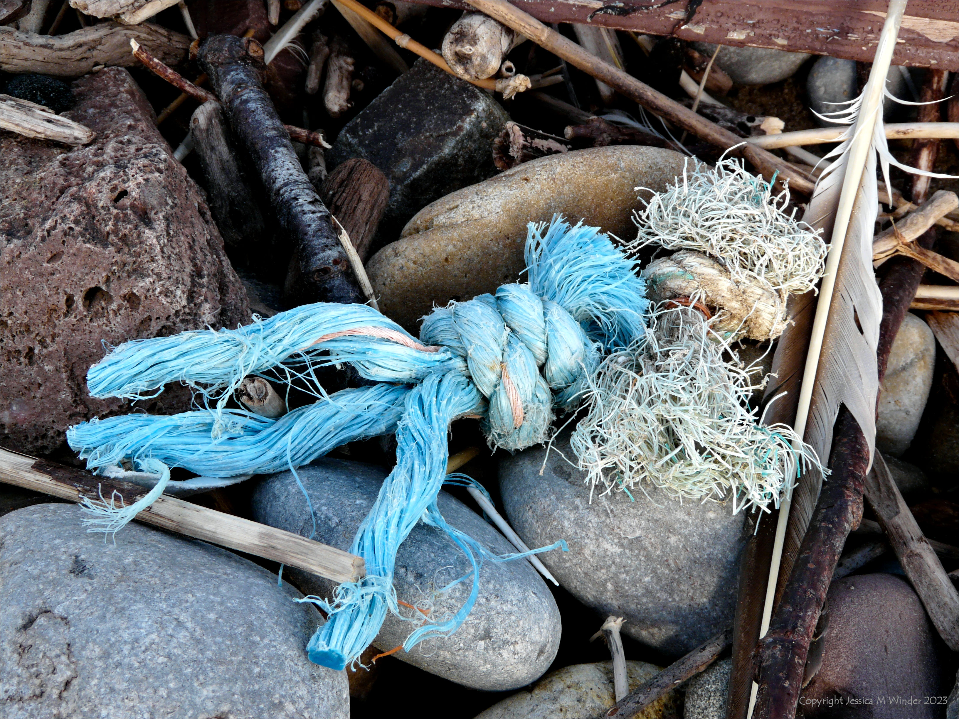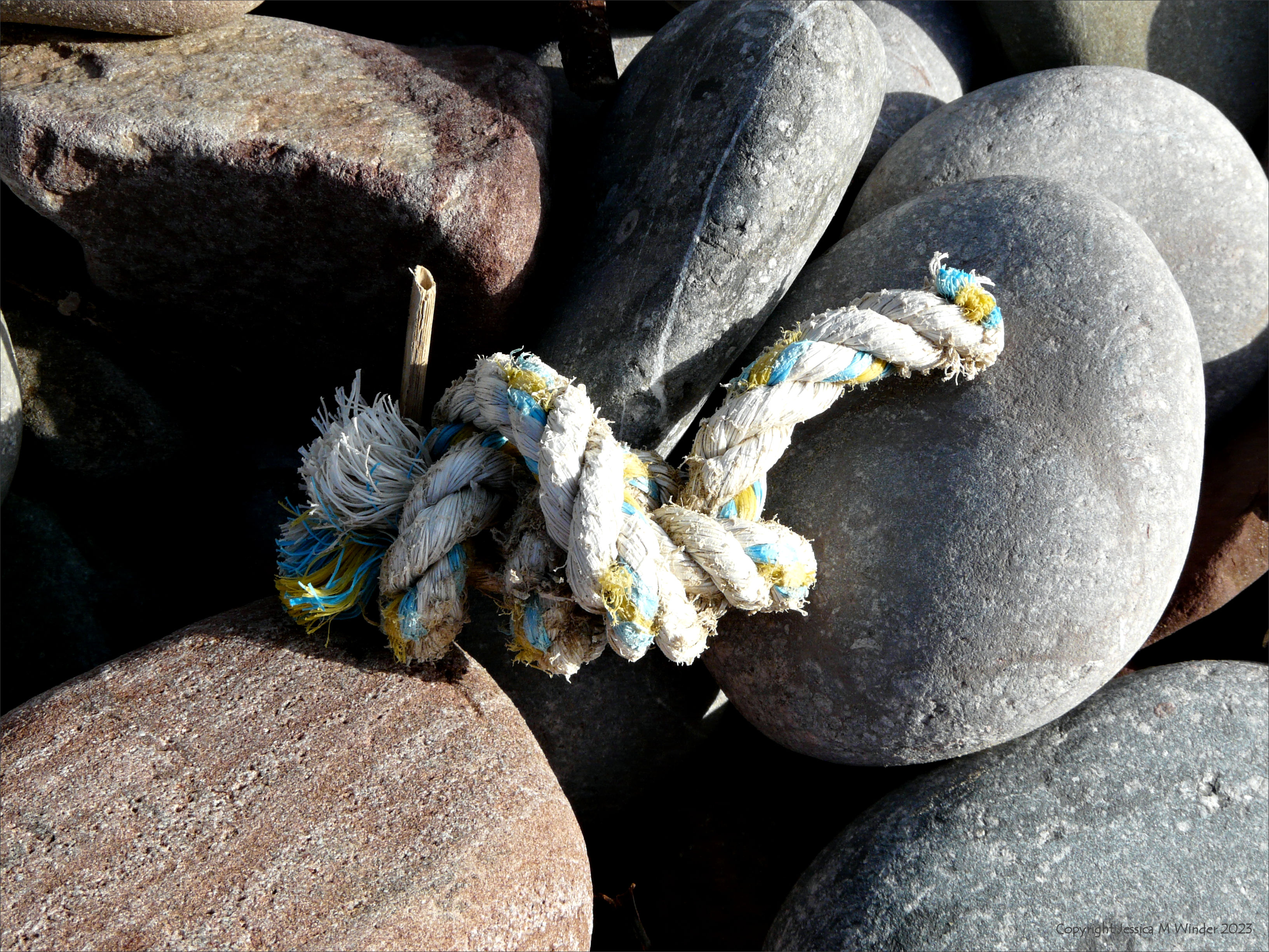 Flotsam Textures 21-43 Pieces of coloured knotted rope found washed up on beach pebbles observed during a single walk back in 2011.