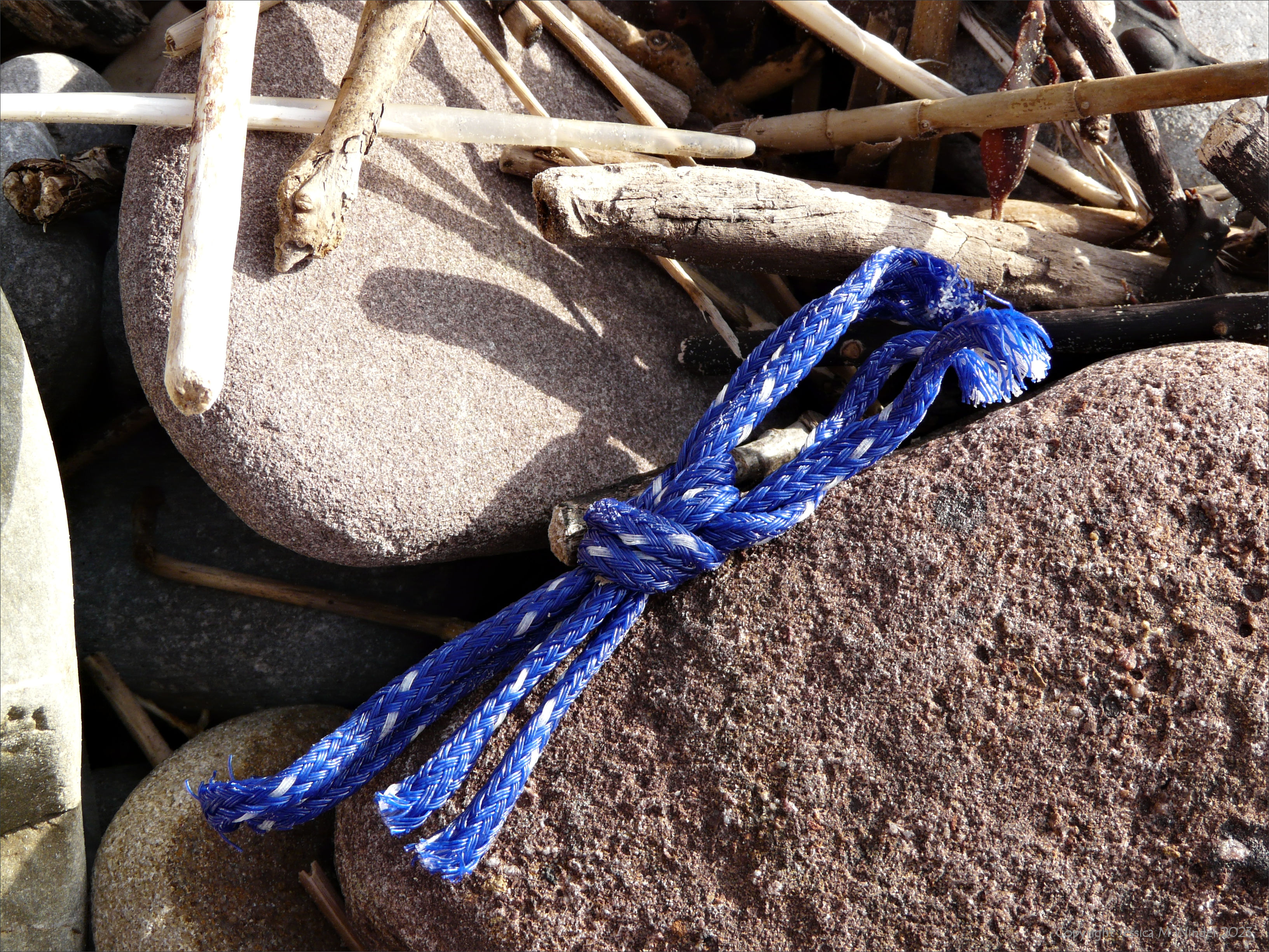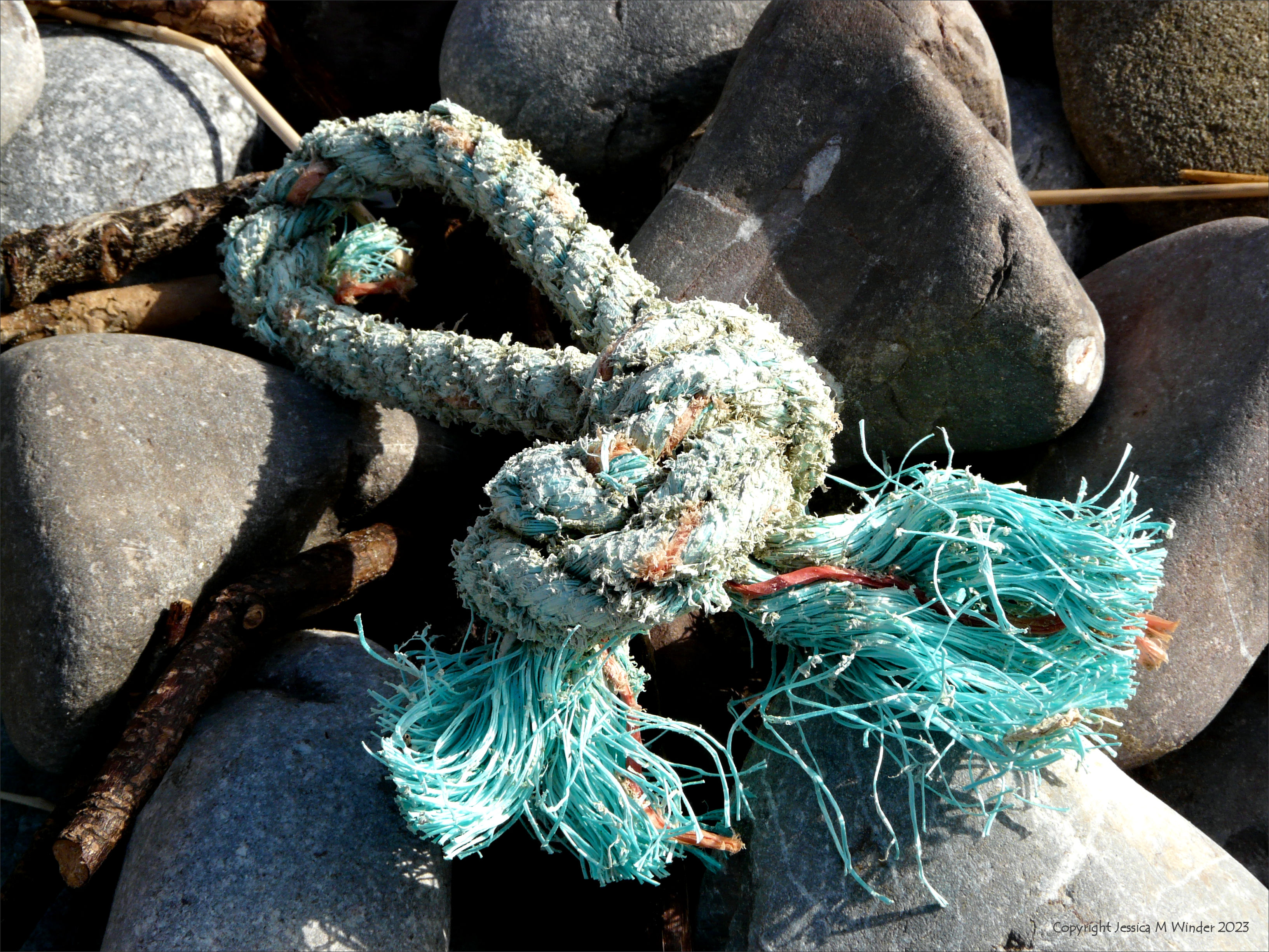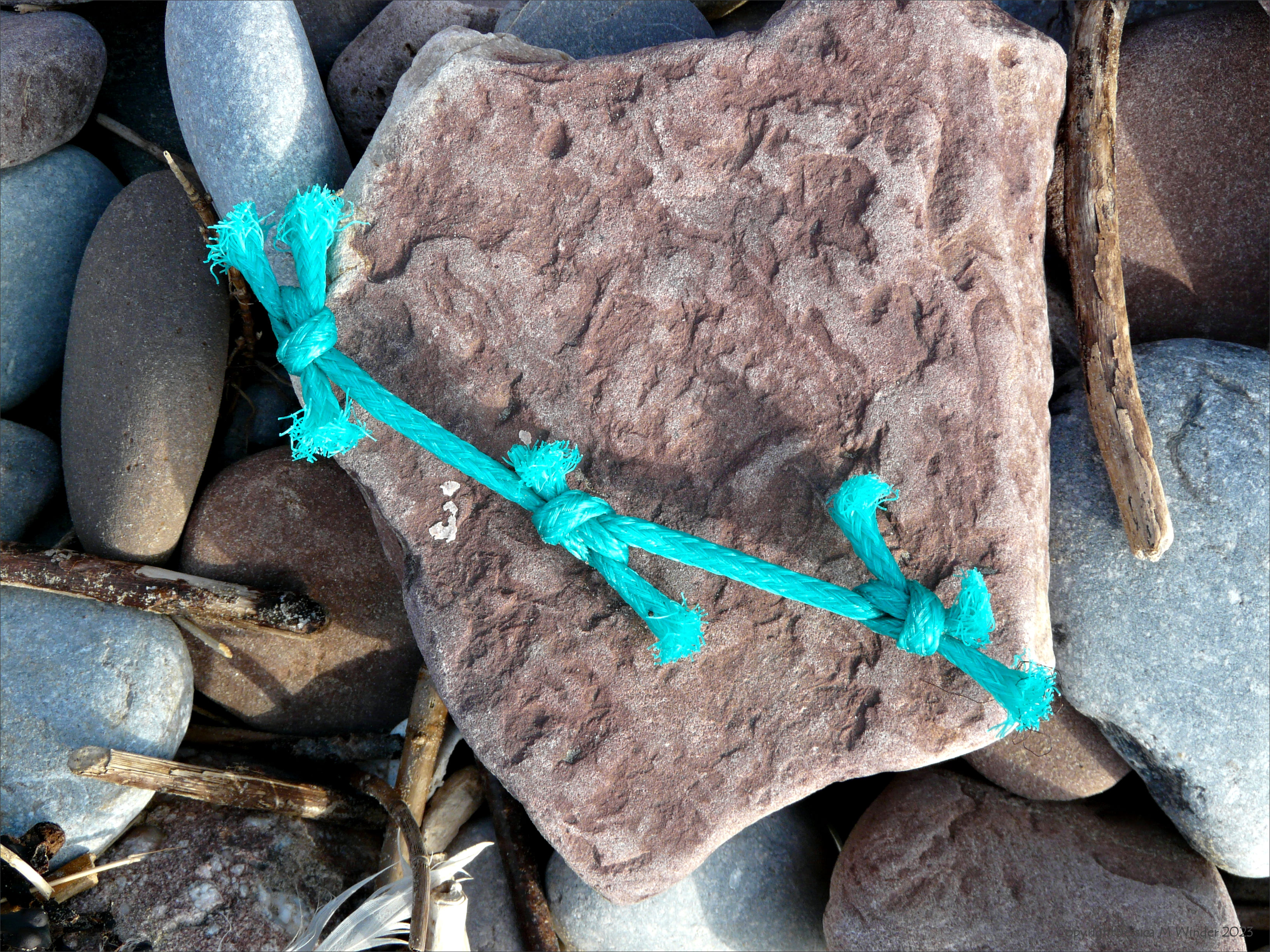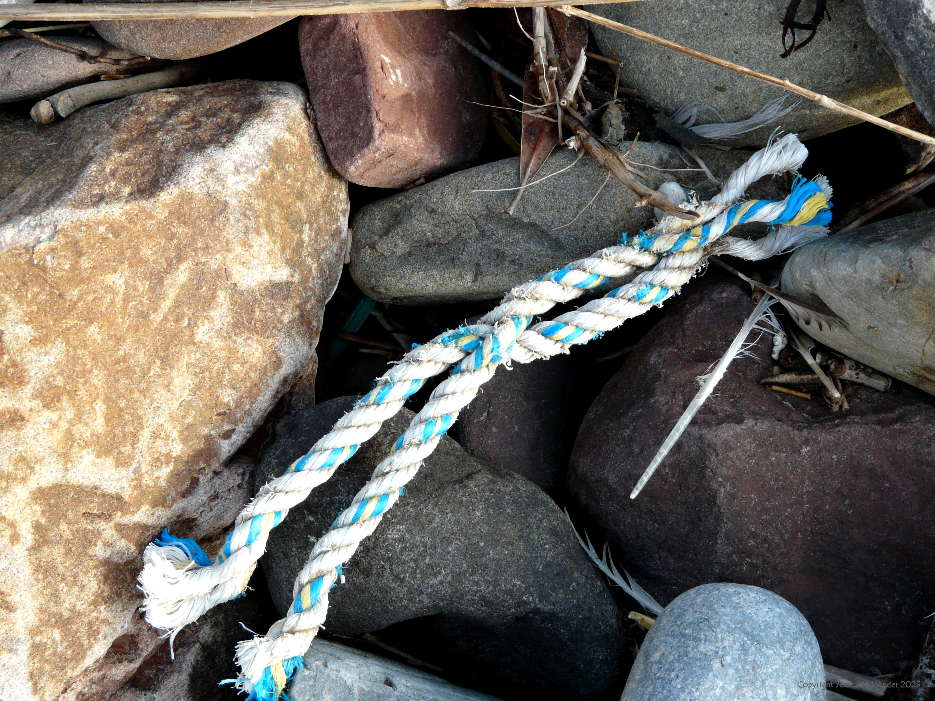 Flotsam Textures 21-43 Pieces of coloured knotted rope found washed up on beach pebbles observed during a single walk back in 2011.