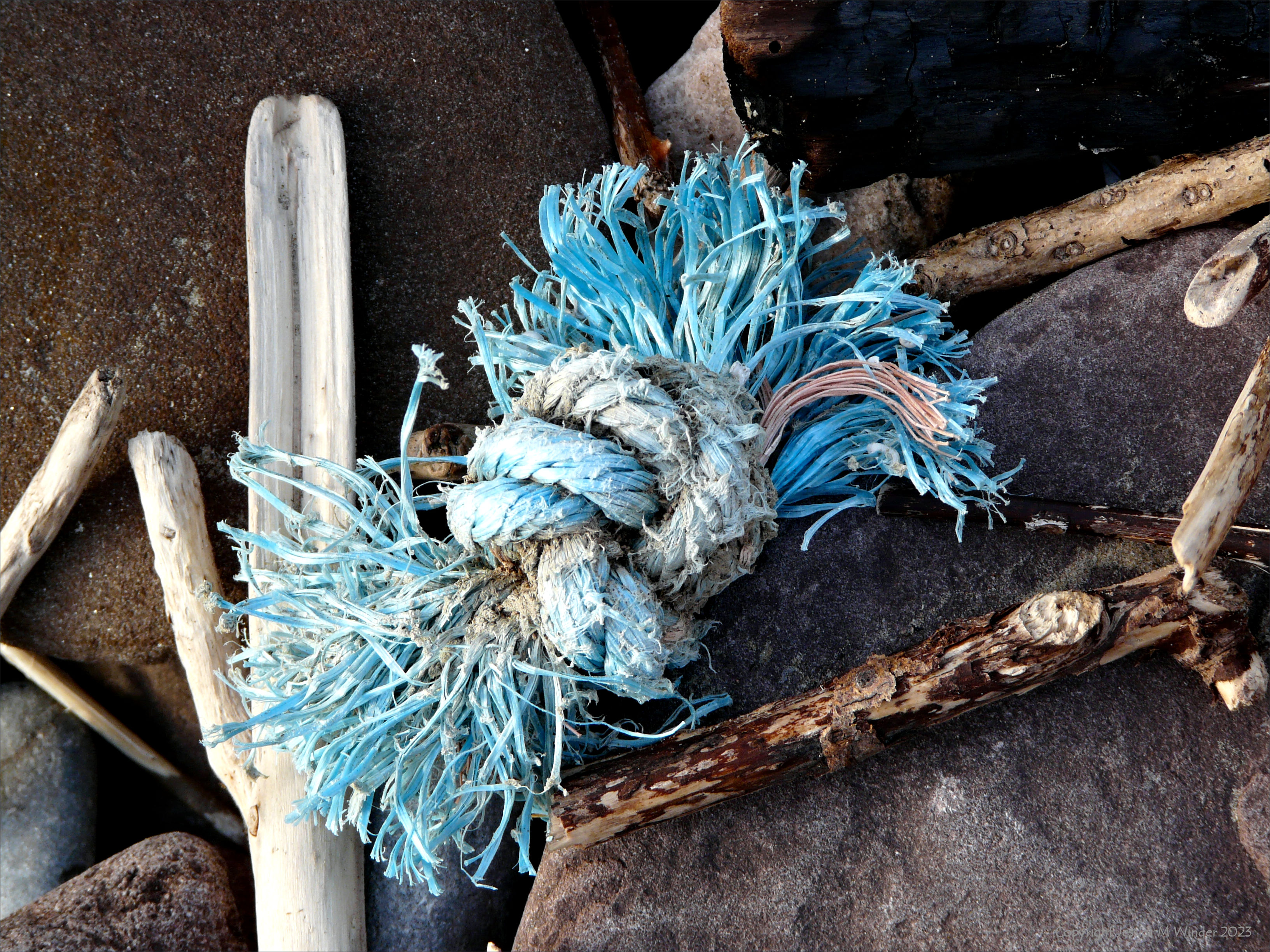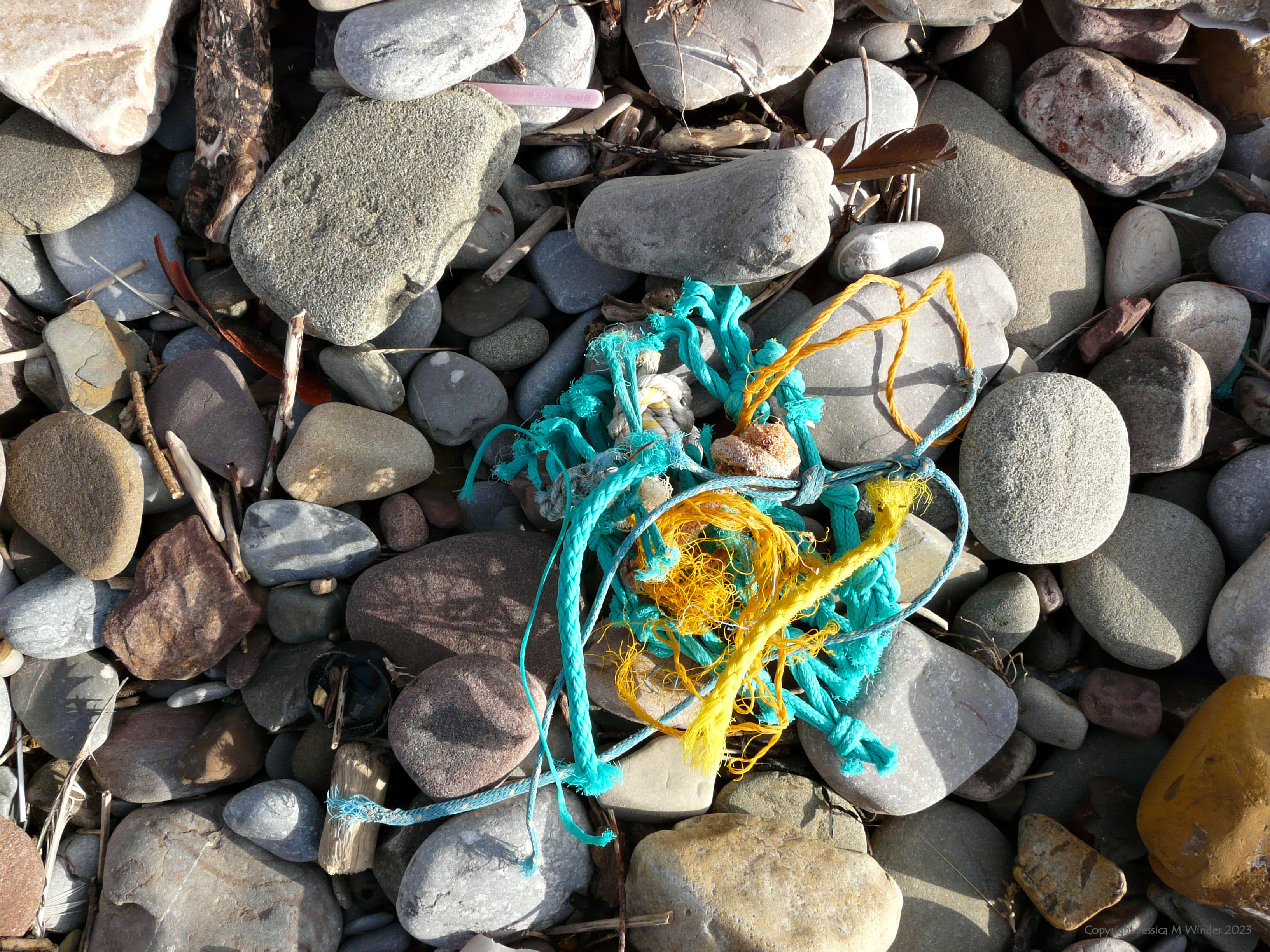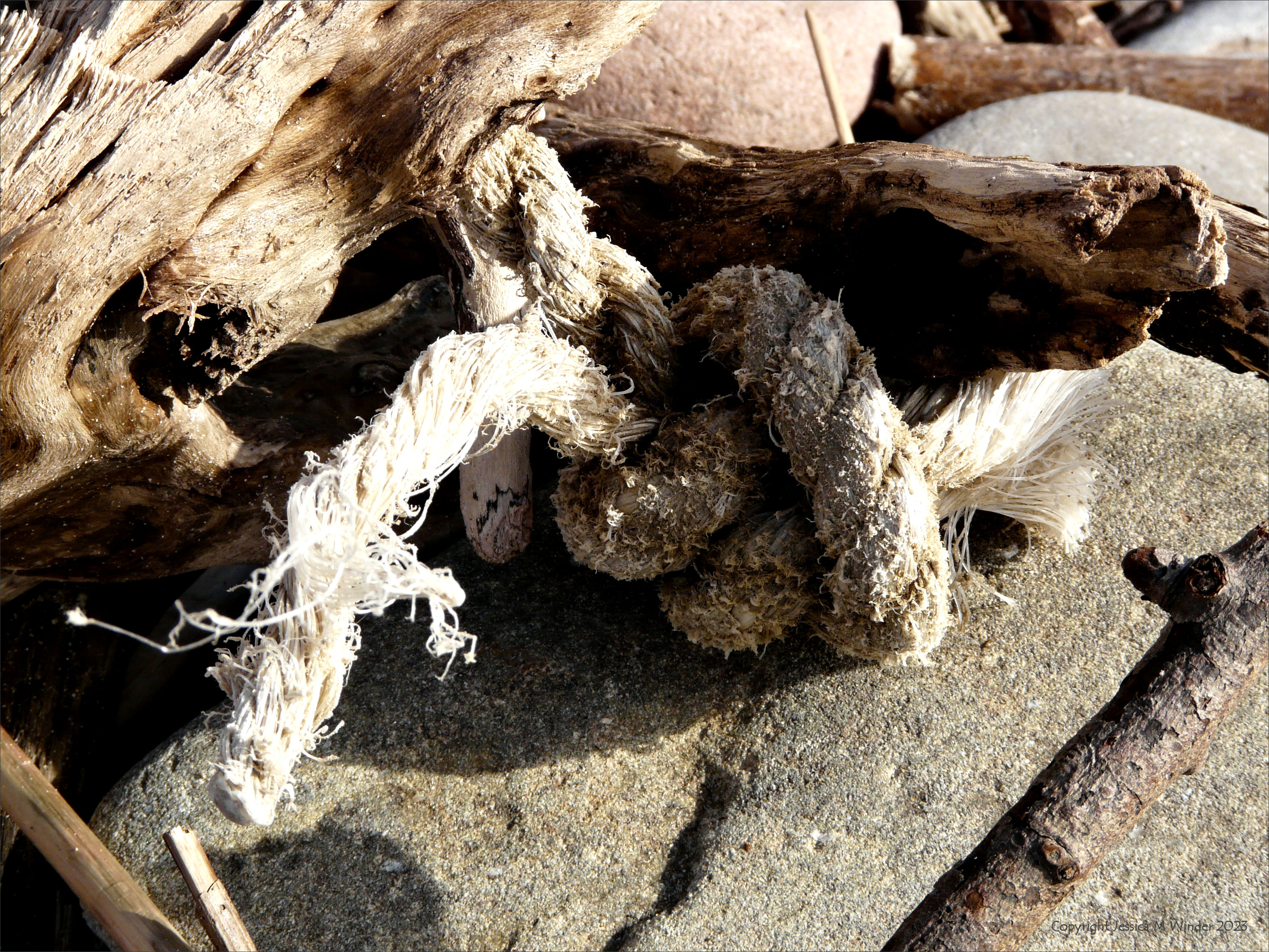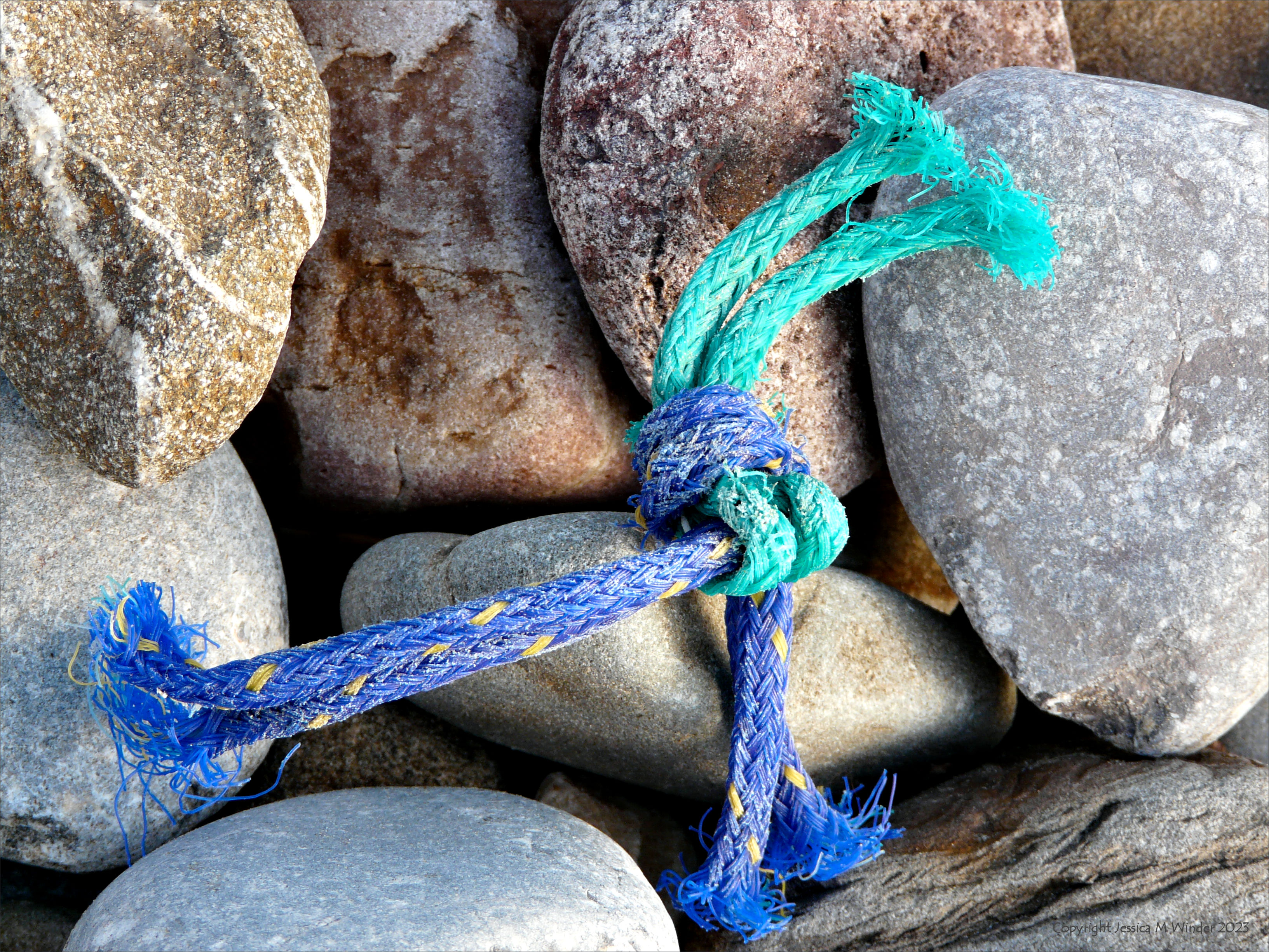 Flotsam Textures 21-43 Pieces of coloured knotted rope found washed up on beach pebbles observed during a single walk back in 2011.