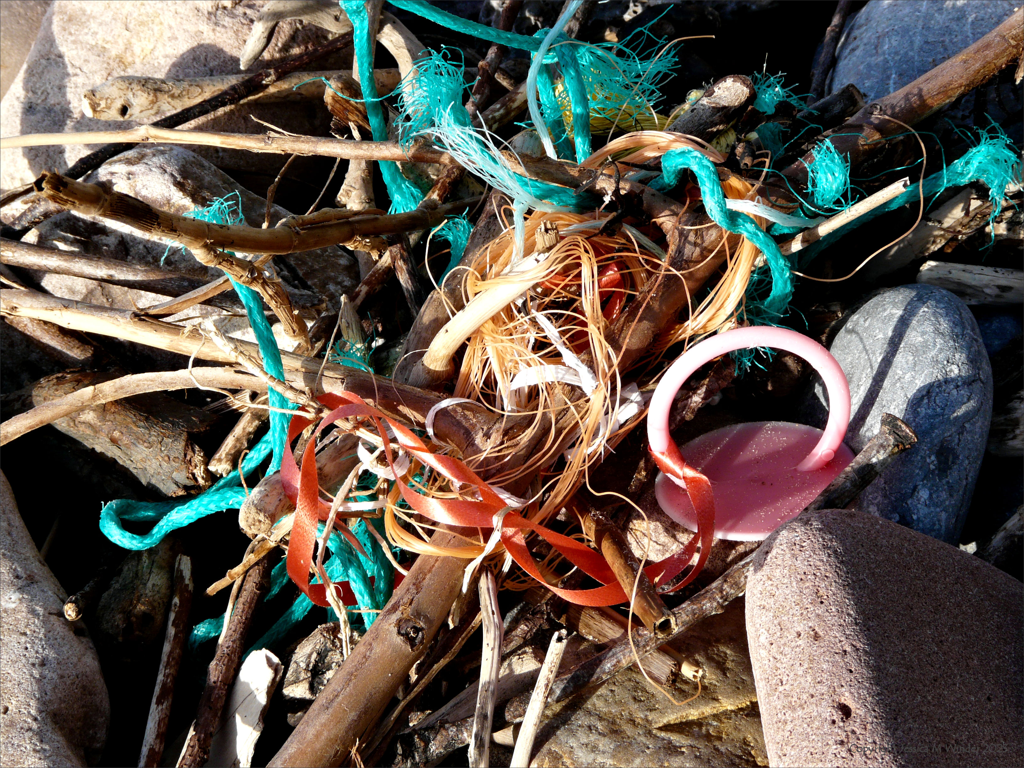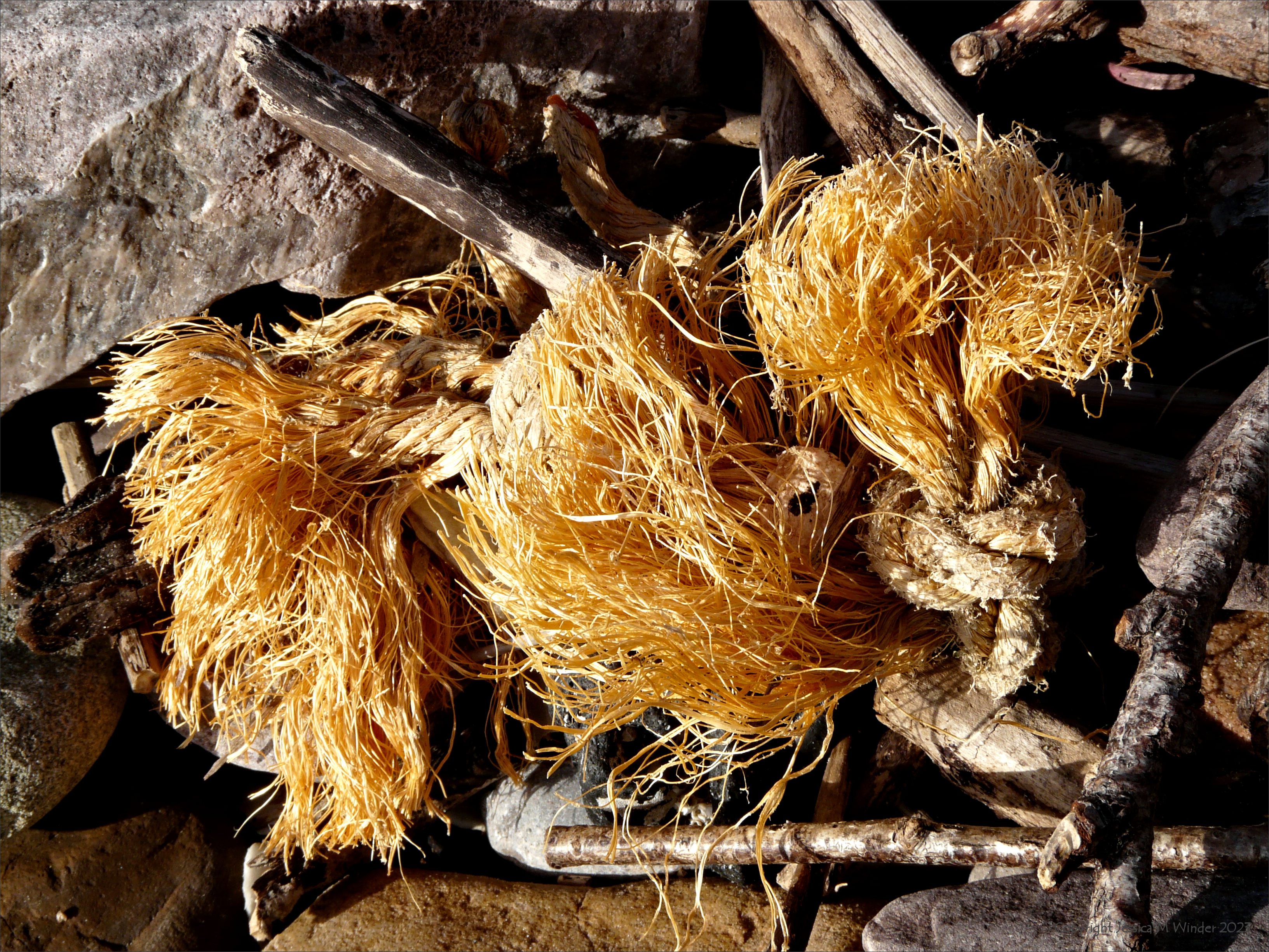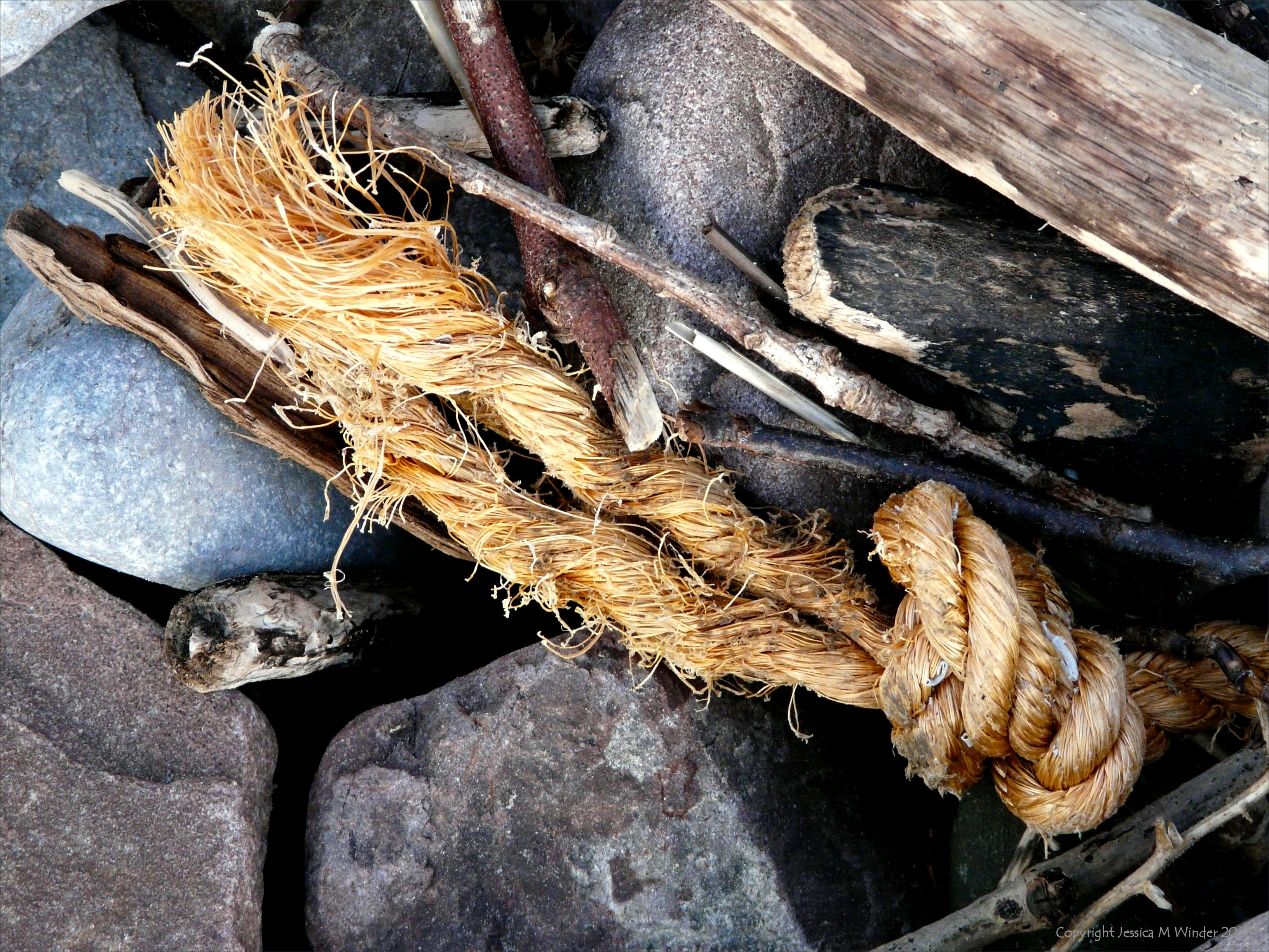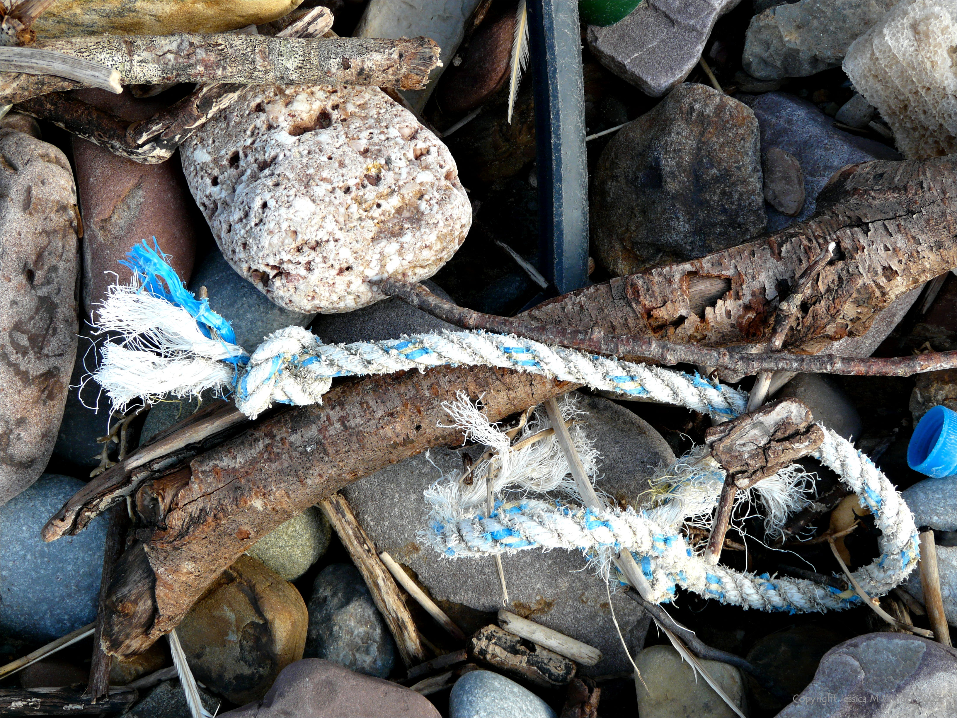 Flotsam Textures 21-43 Pieces of coloured knotted rope found washed up on beach pebbles observed during a single walk back in 2011.