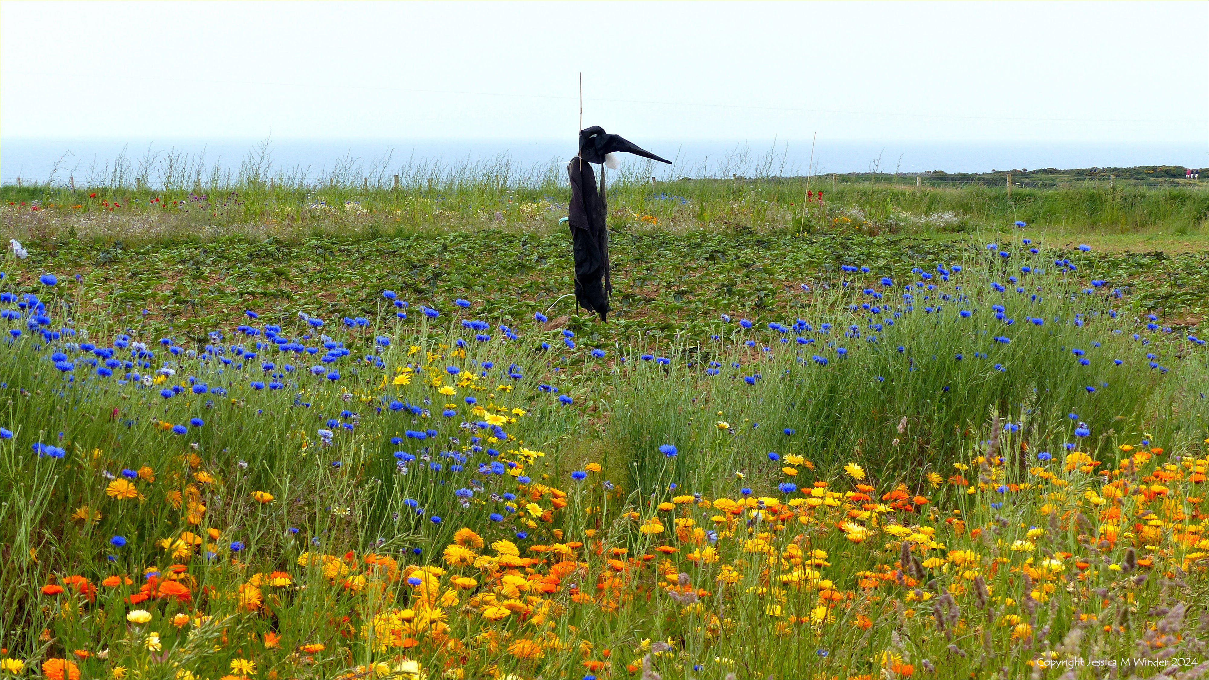 Rhossili Fields June 2023 Part 2 – Images of the plant assemblages in fields that have been seeded by the National Trust to encourage wildlife on The Vile medieval field system at Rhossili in Gower, South Wales. The cornflowers and marigolds were a decorative border to a field of growing sunflowers for which Rhossili has become famous in recent years.