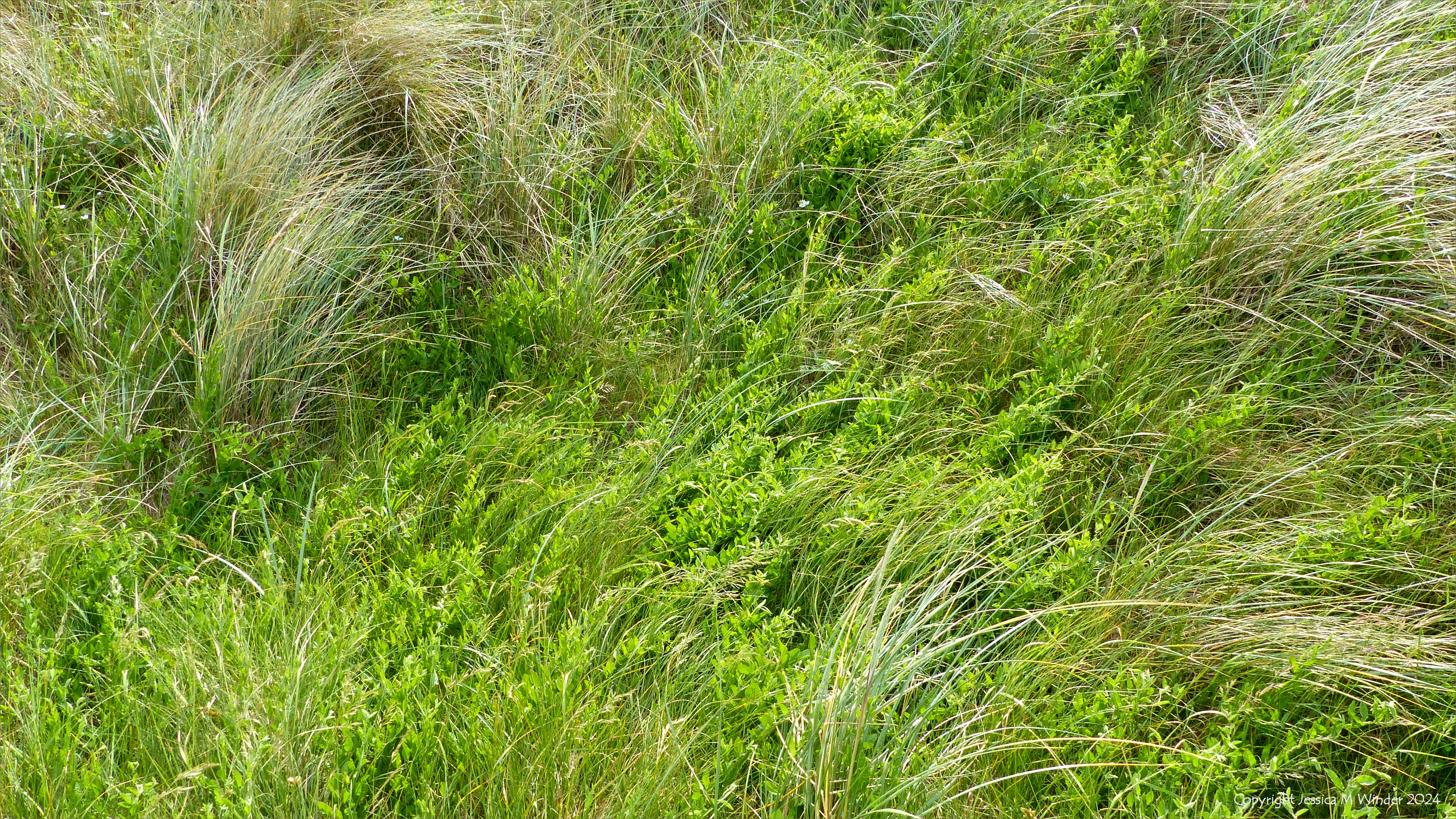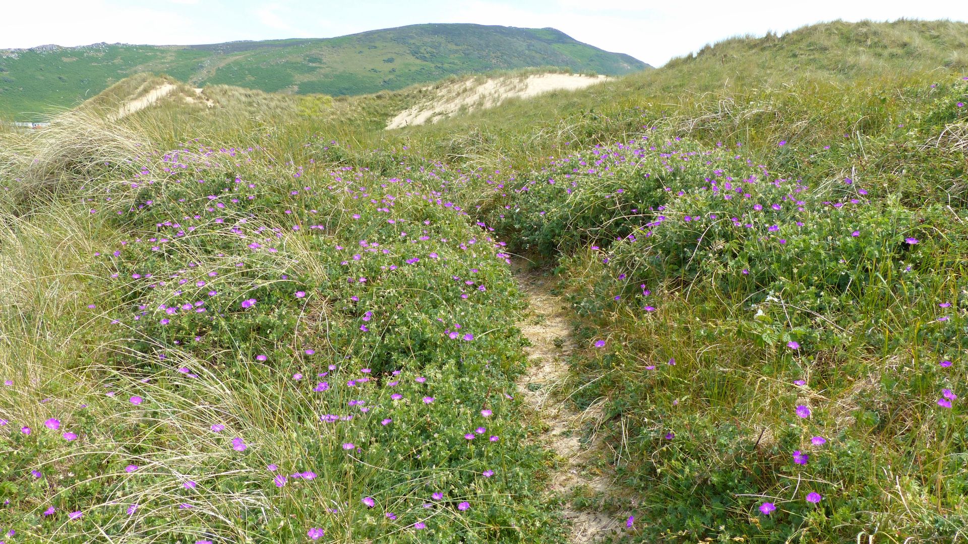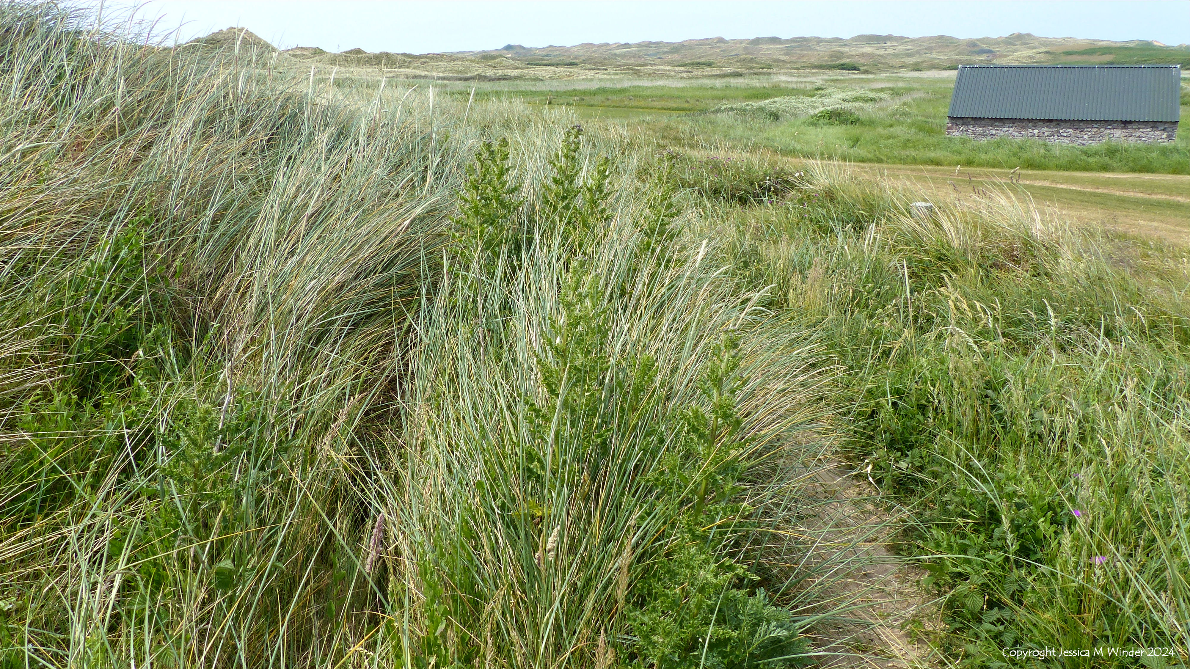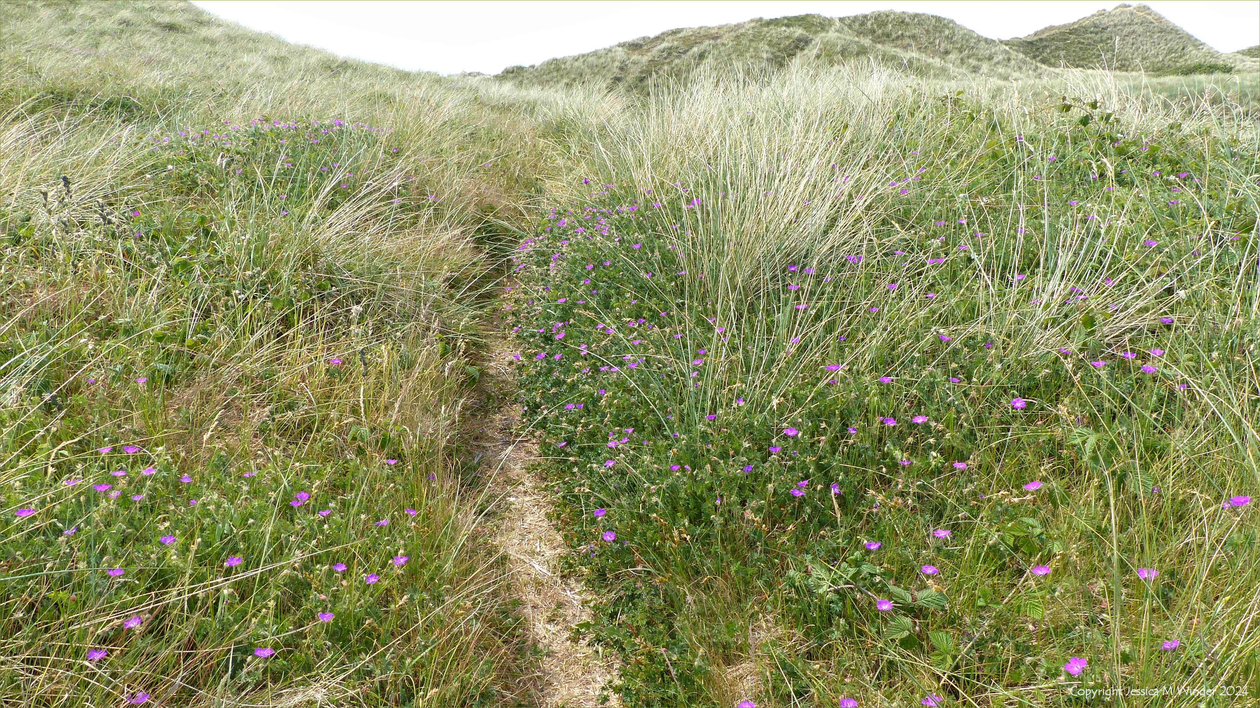 Fixed Dune Plant Communities 1 – Images of vegetation groupings on sand to the landward side of stable dunes at Llangennith on Rhossili Bay in Gower, South Wales in June 2023.