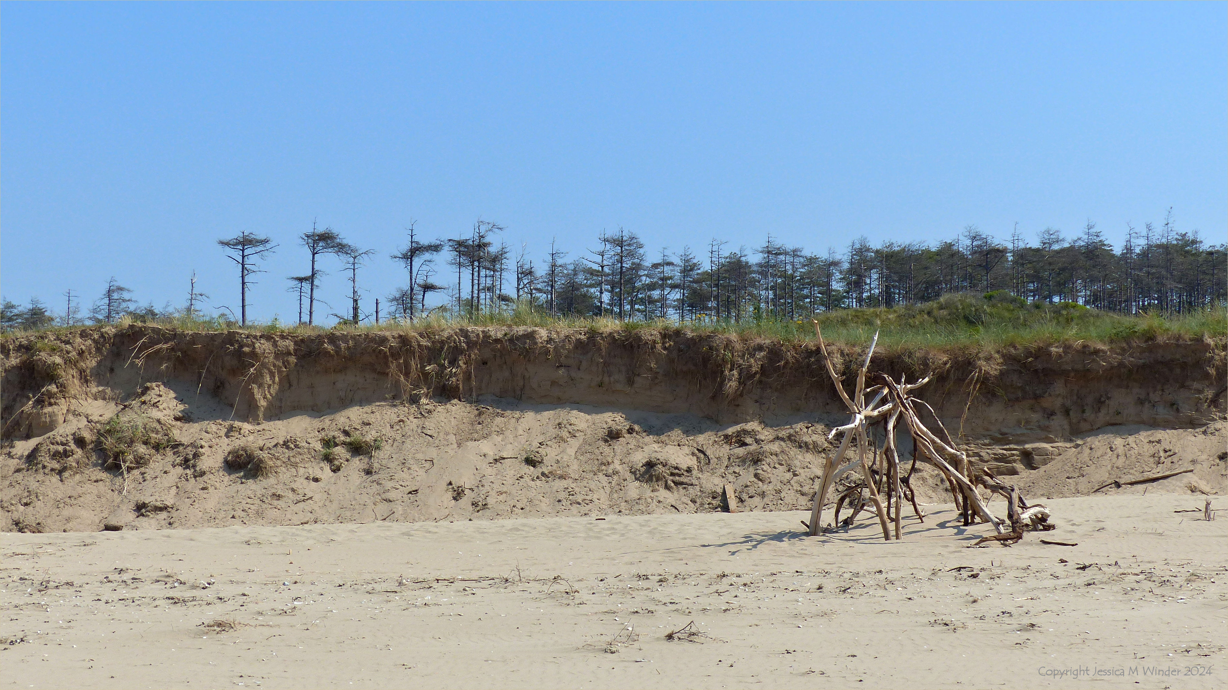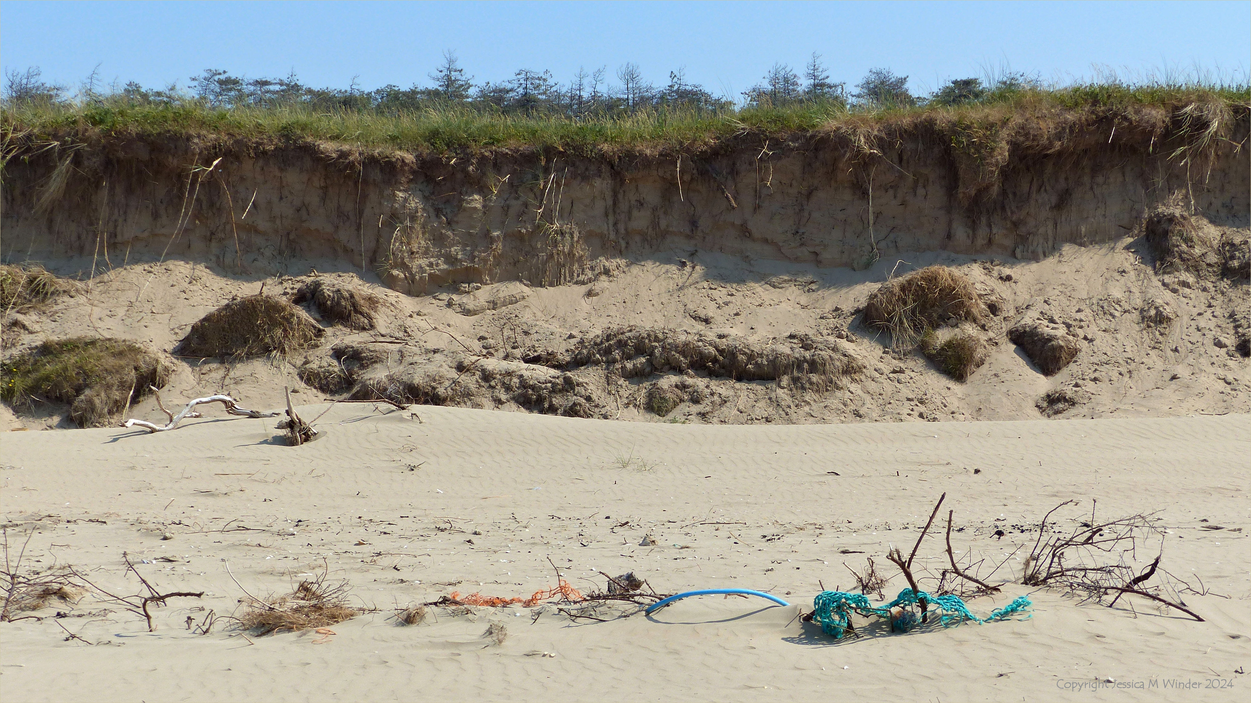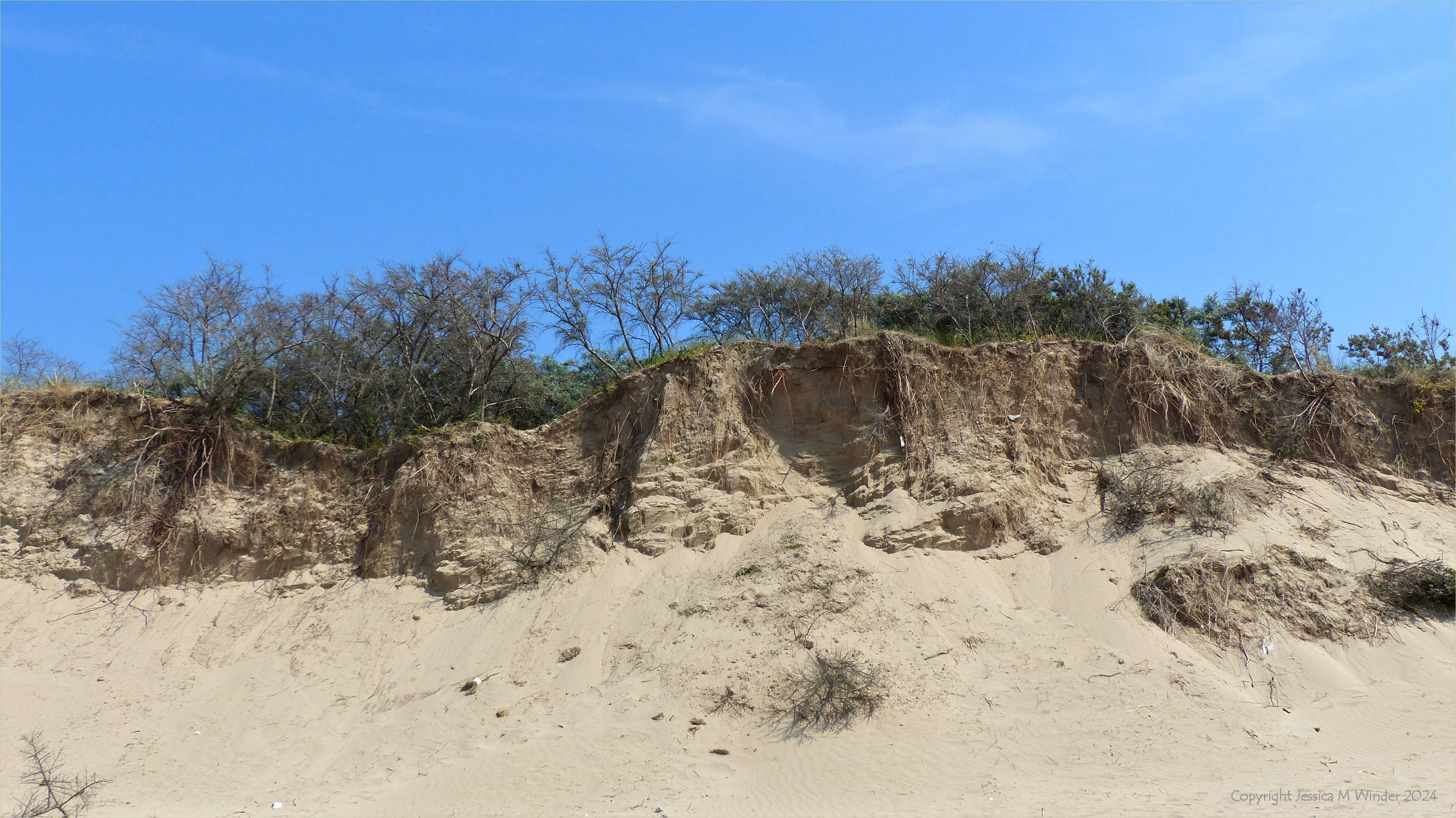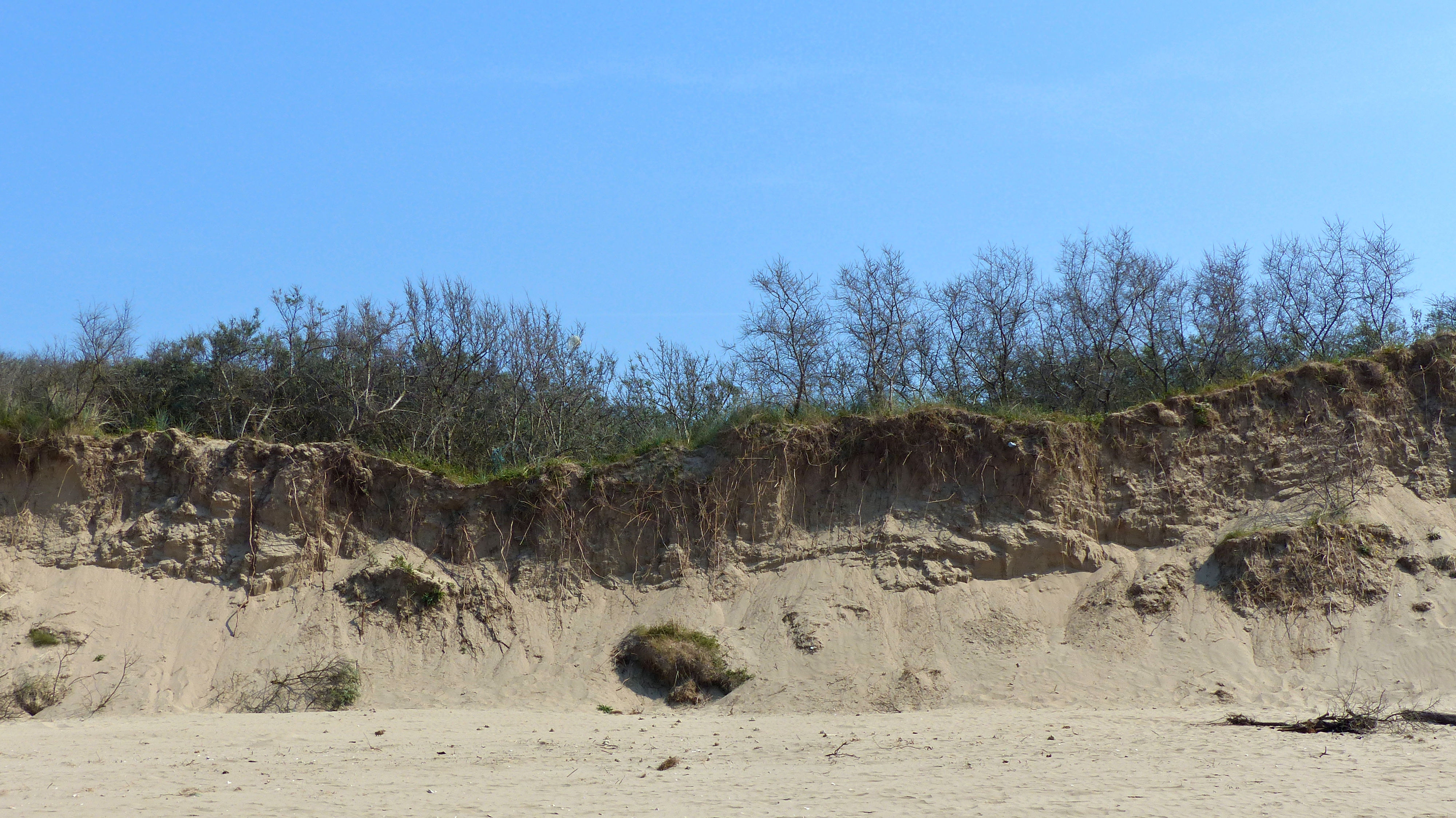 Coastal Erosion at Cefn Sidan which is adjacent to Pembrey Country Park in South Wales. Wave action and weather gradually erode coastal landforms around the British Isles. This has always happened but, with changing climate and weather patterns, it has been happening at a much faster rate in recent decades.