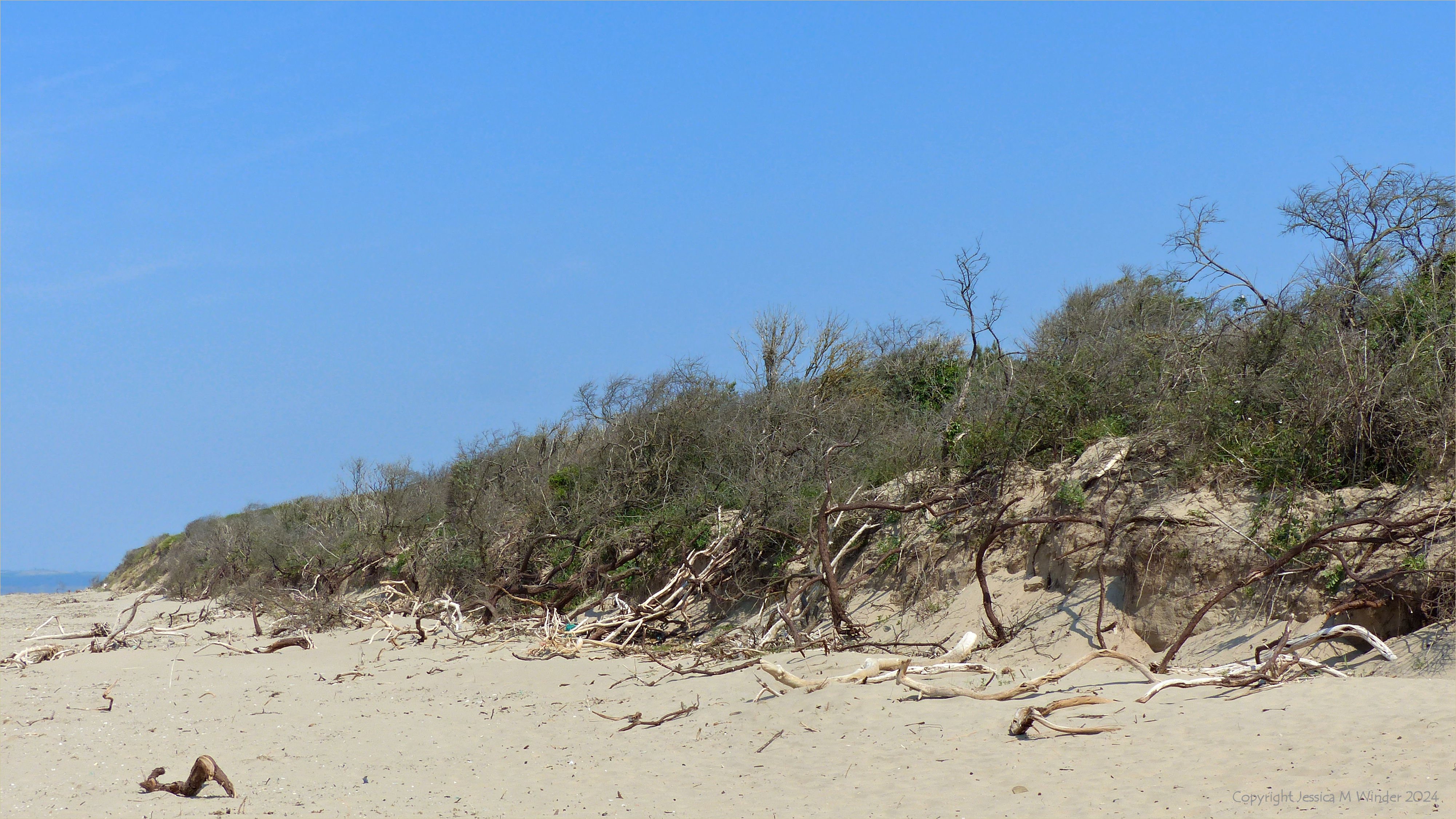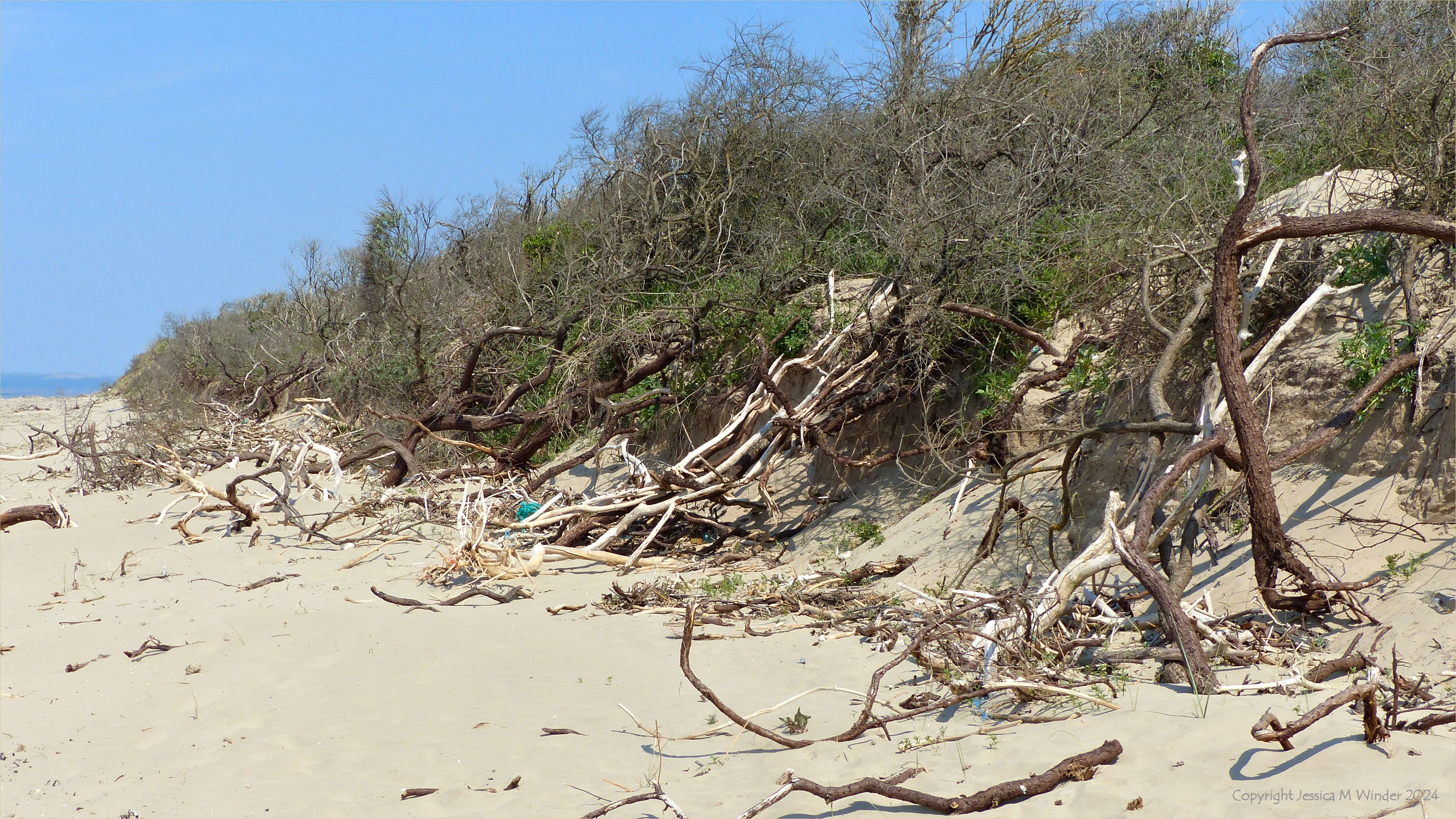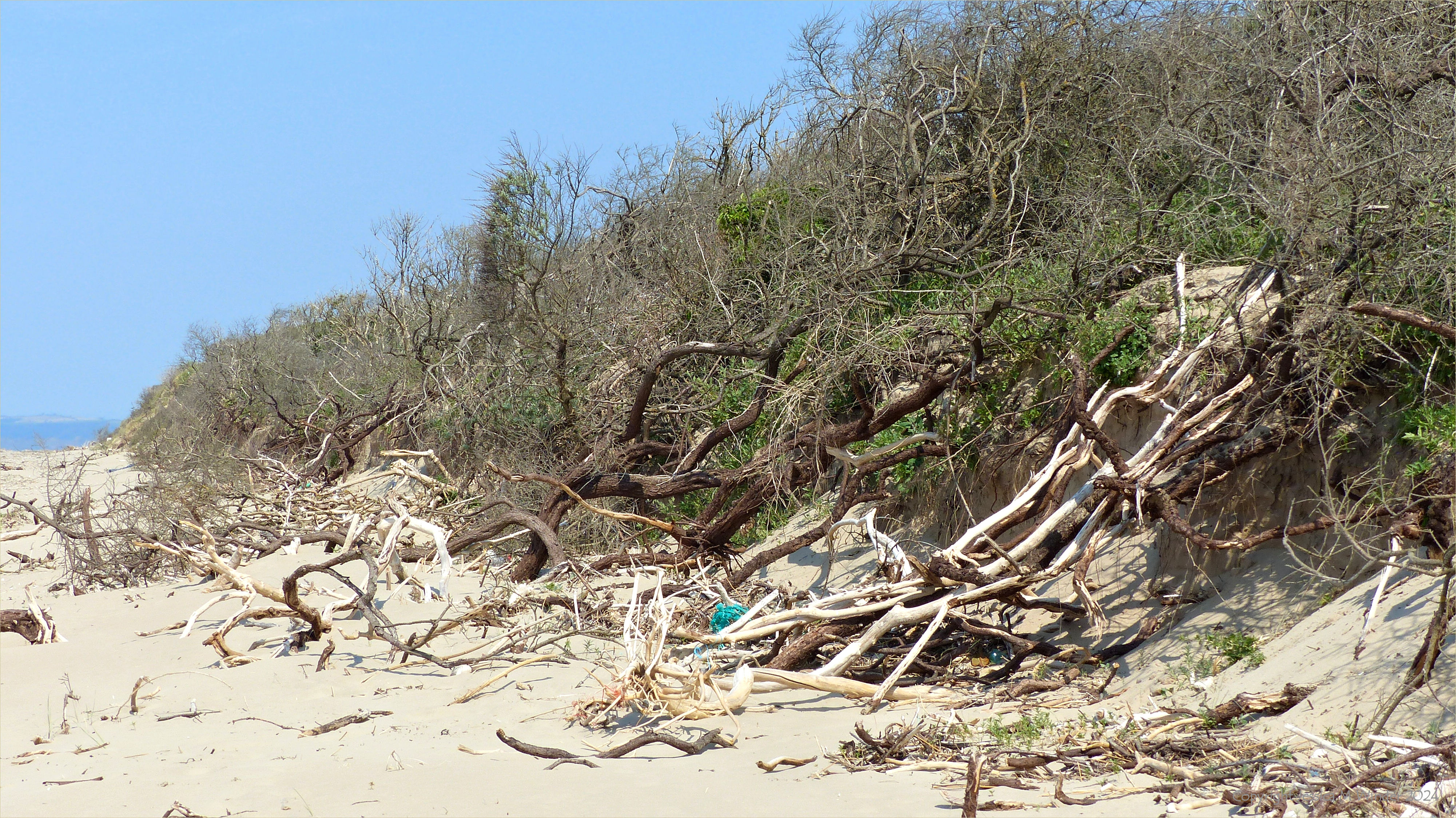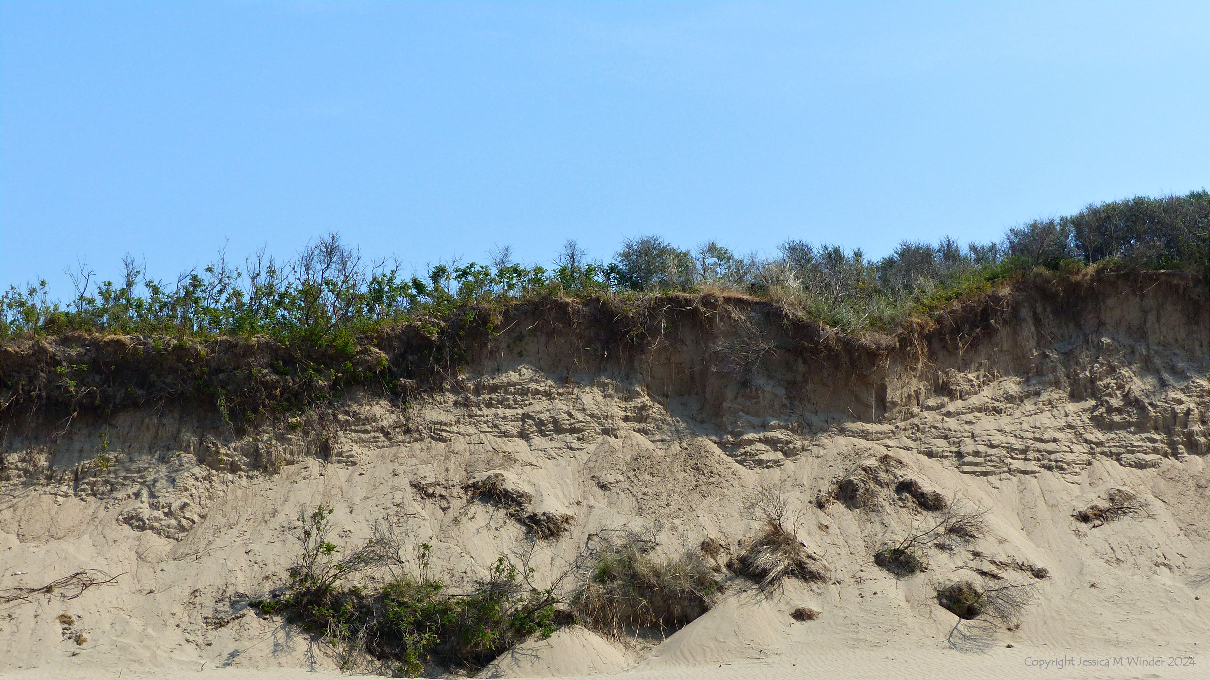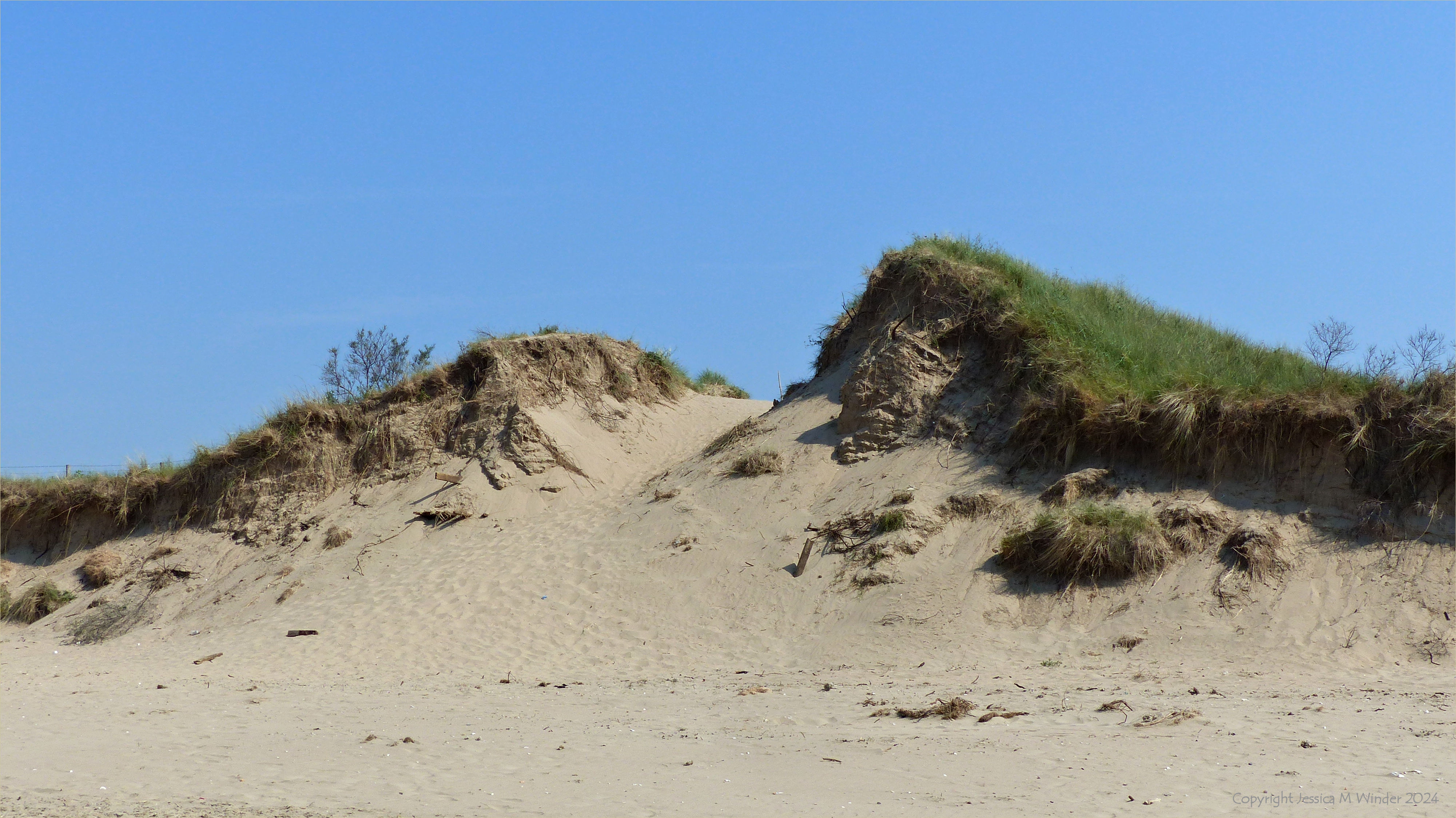 Coastal Erosion at Cefn Sidan which is adjacent to Pembrey Country Park in South Wales. Wave action and weather gradually erode coastal landforms around the British Isles. This has always happened but, with changing climate and weather patterns, it has been happening at a much faster rate in recent decades.