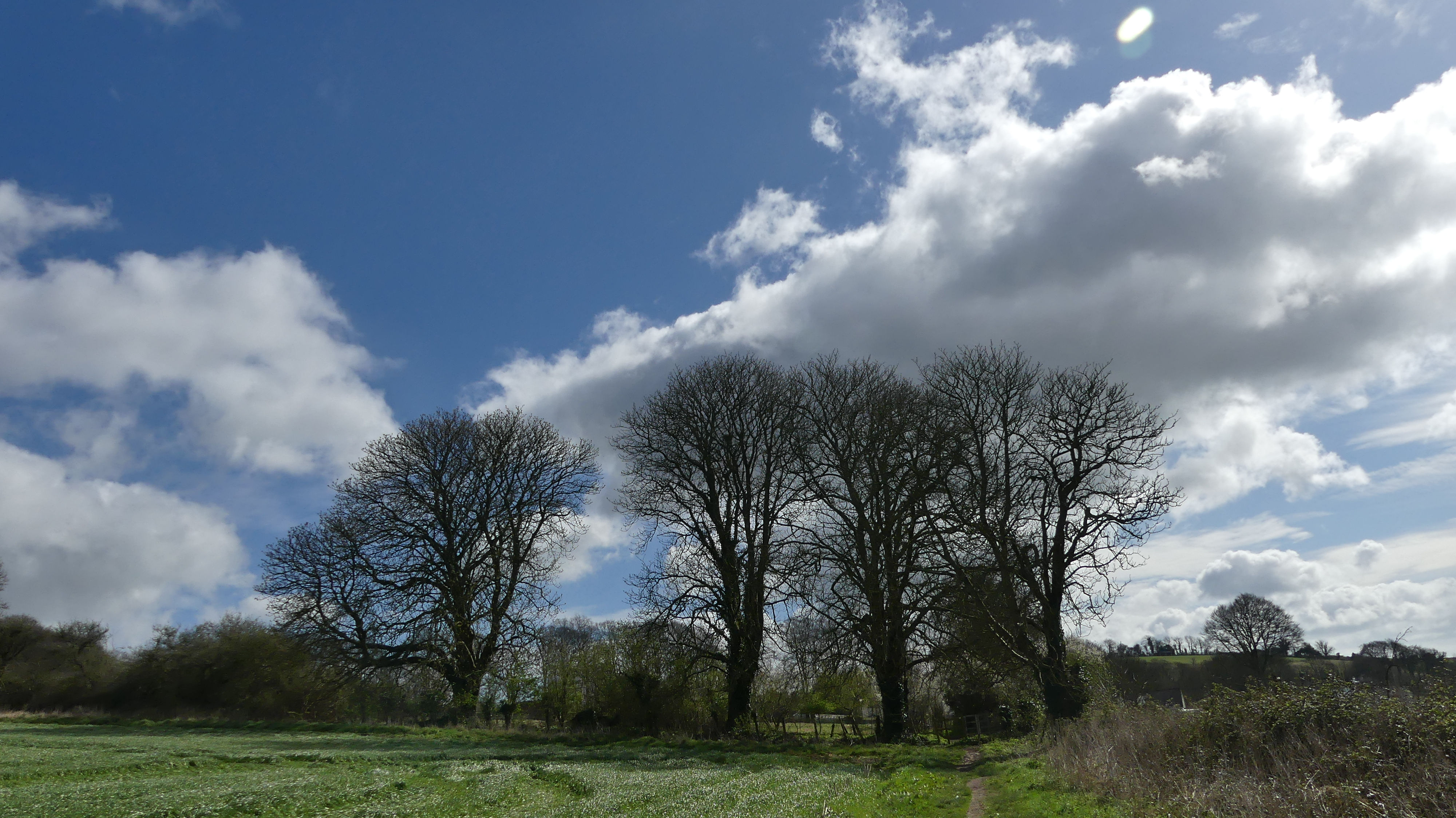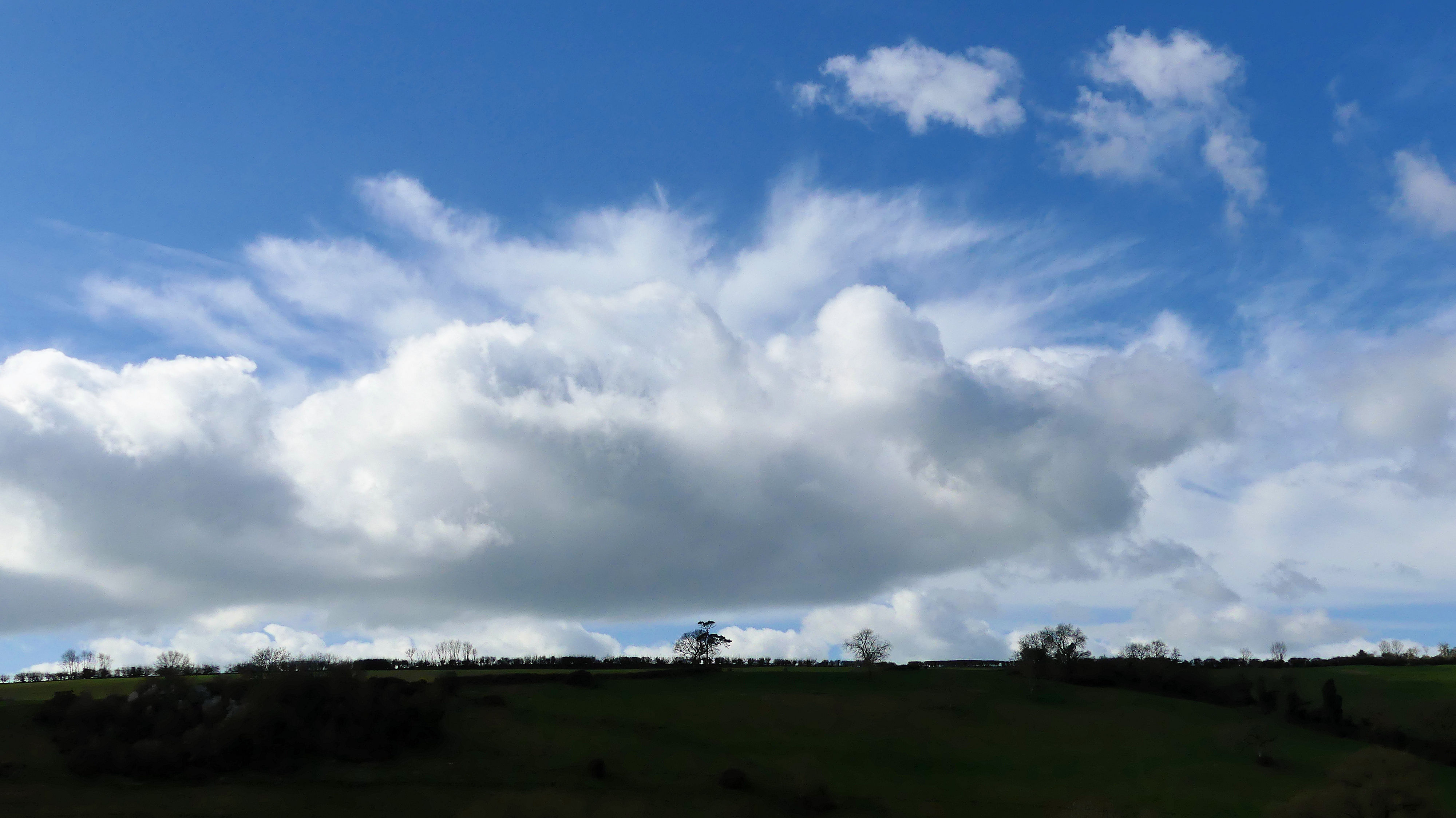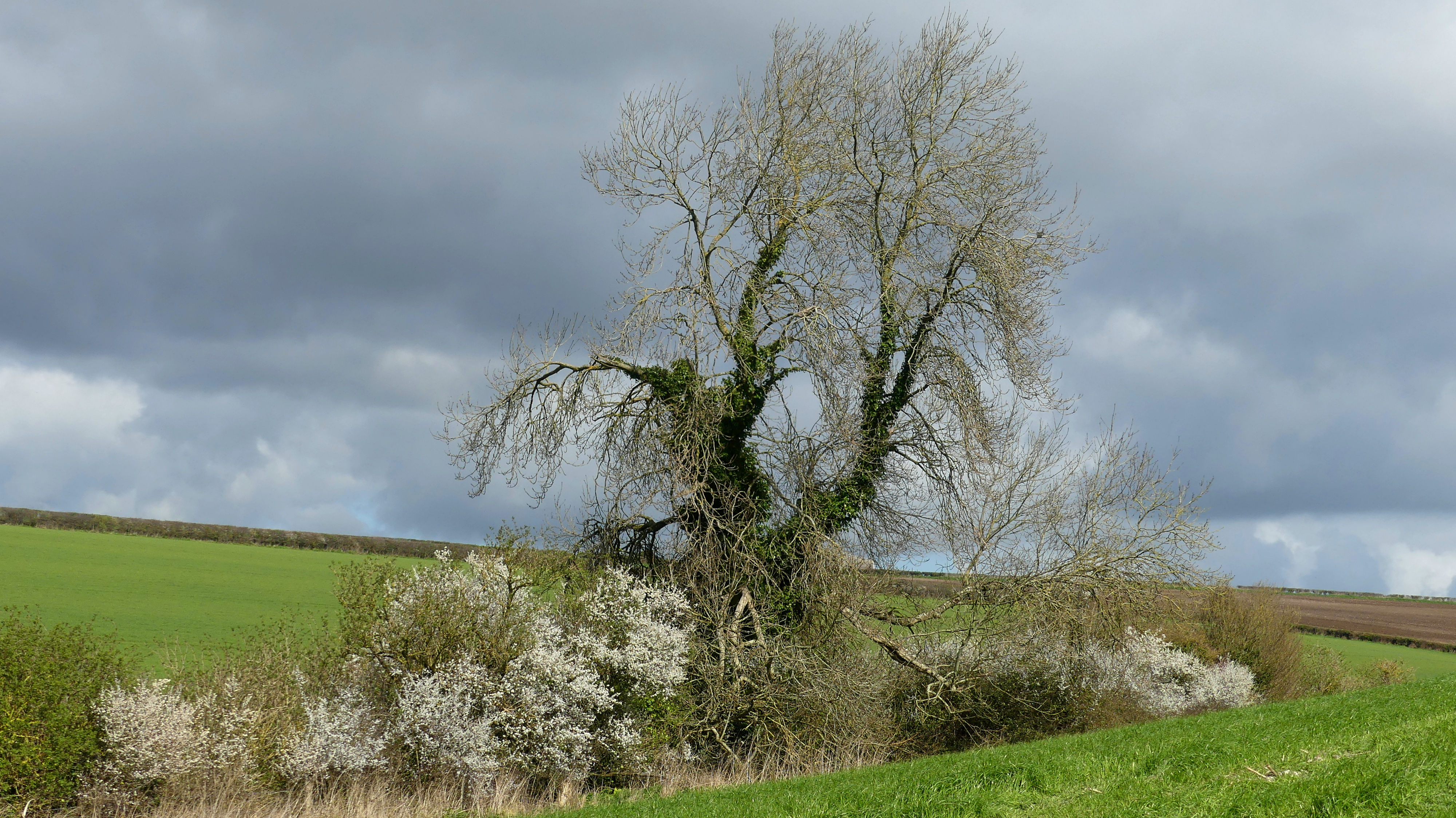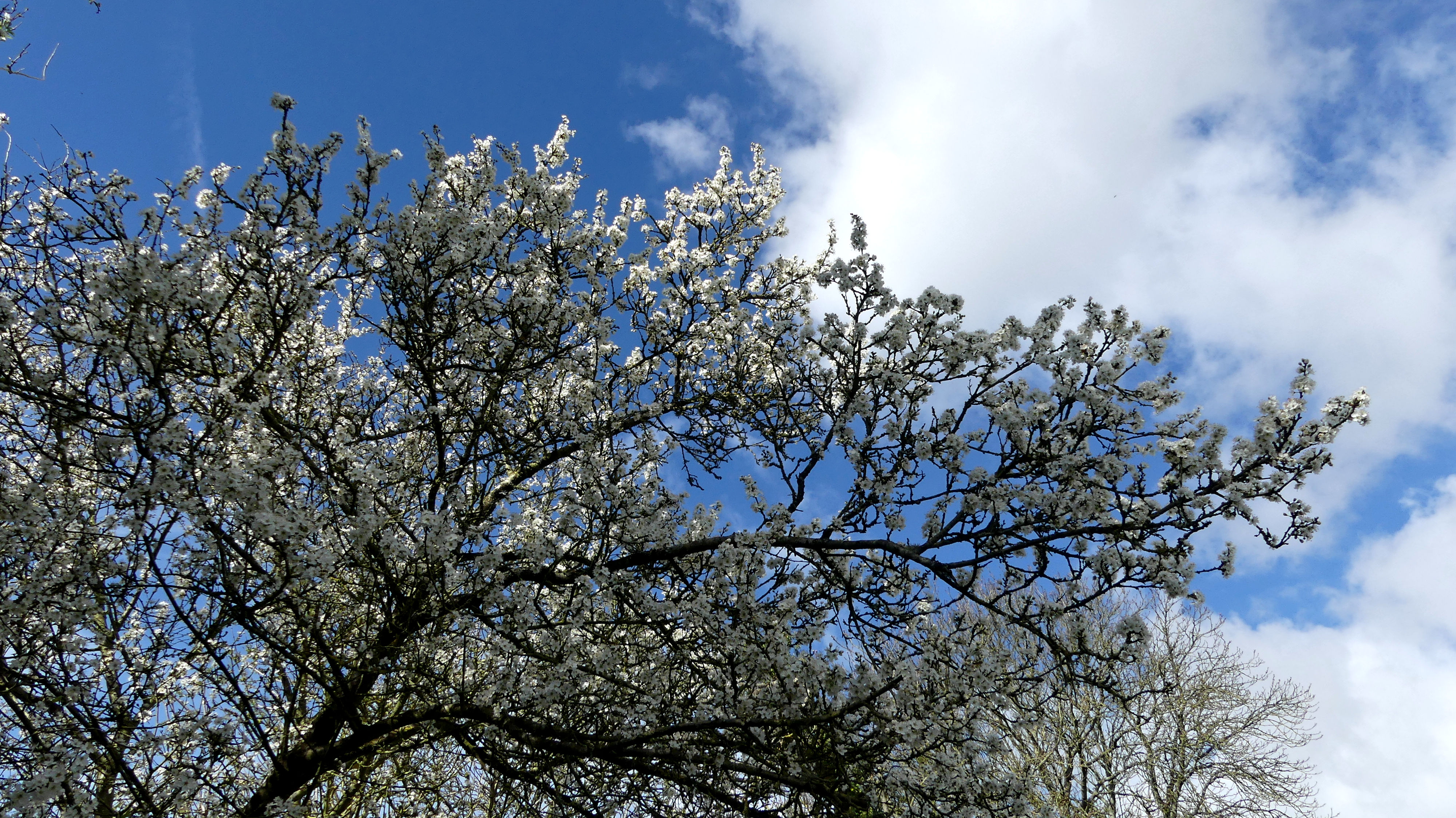 Its been so so wet, that a glimpse of the blue sky and the blossom in the blackthorn is quite a tonic. Lovely clouds too.