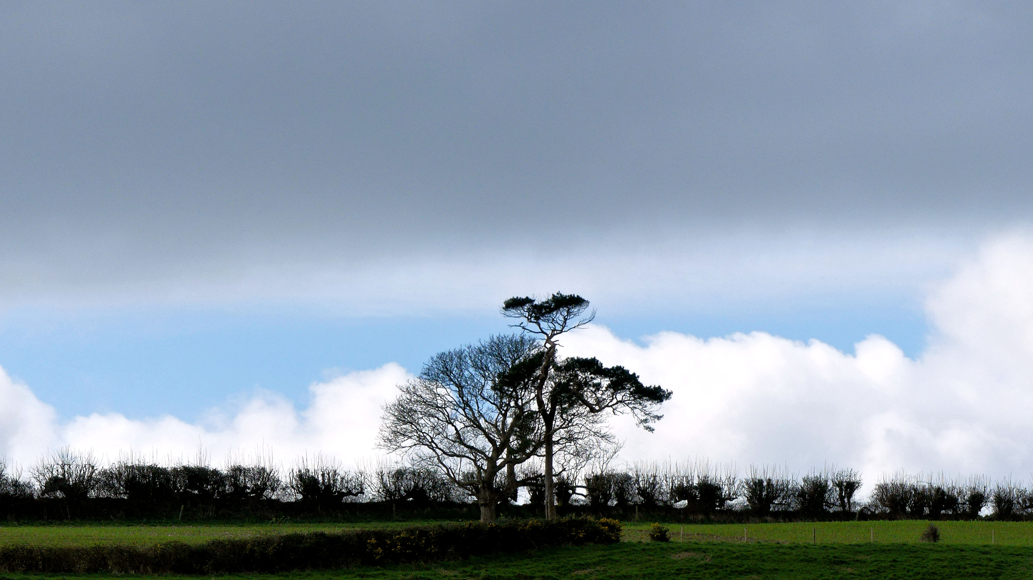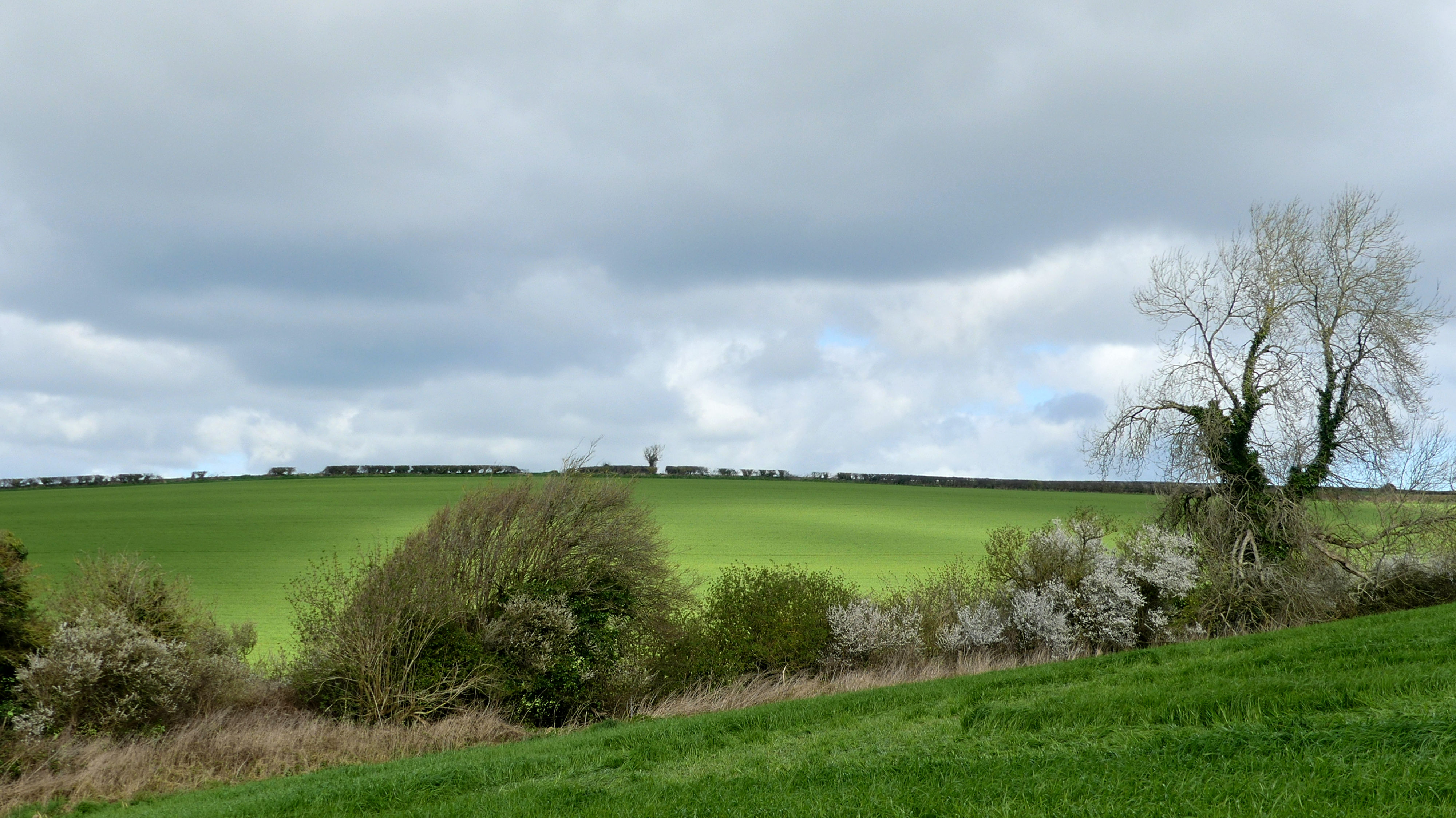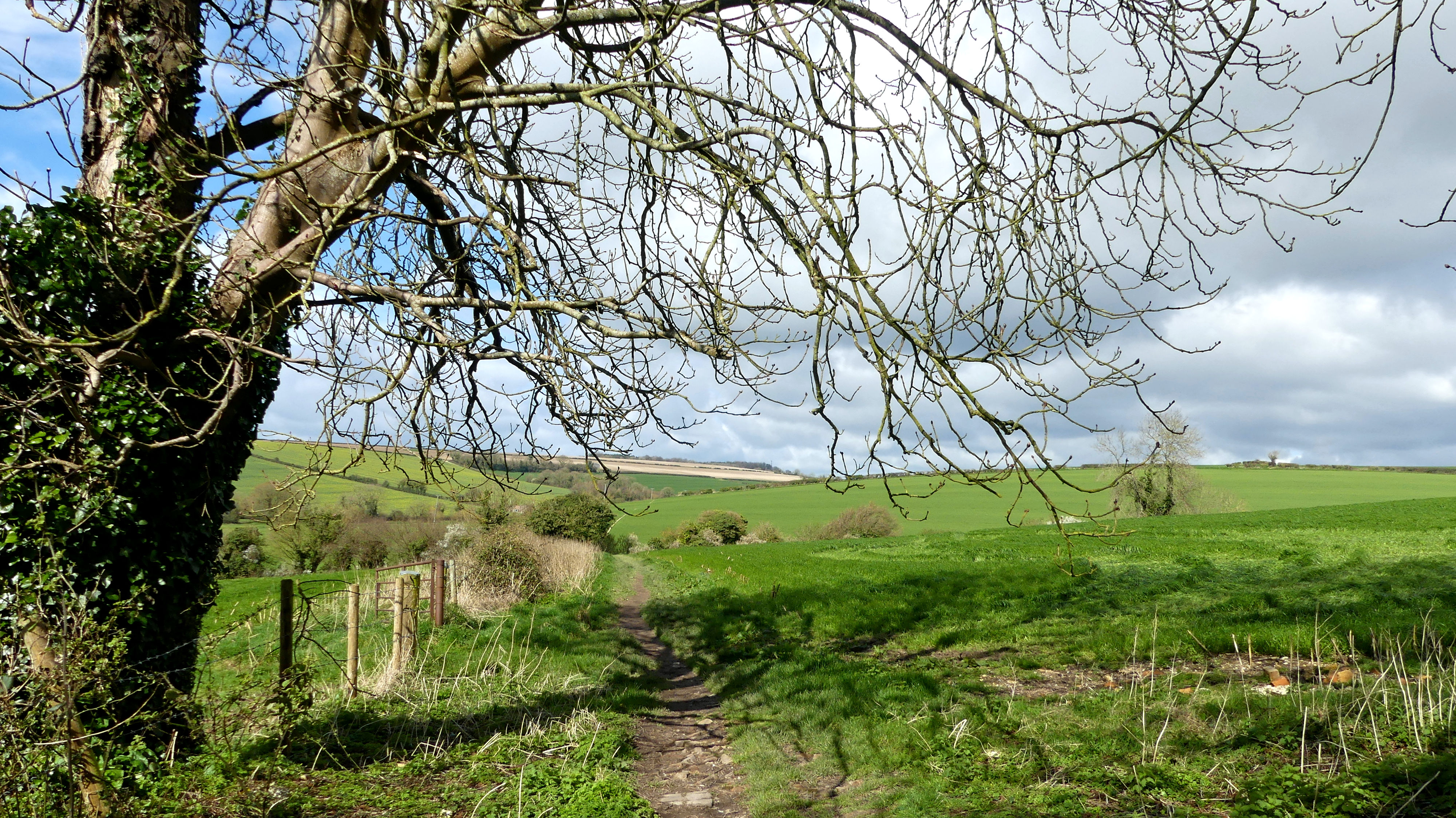 Charlton Down Walk 1 Out in the fields around the Dorset village of Charlton Down with panoramic views of fields and hedgerows, wide sky vistas and rapidly changing cloud formations (24th March 2024).