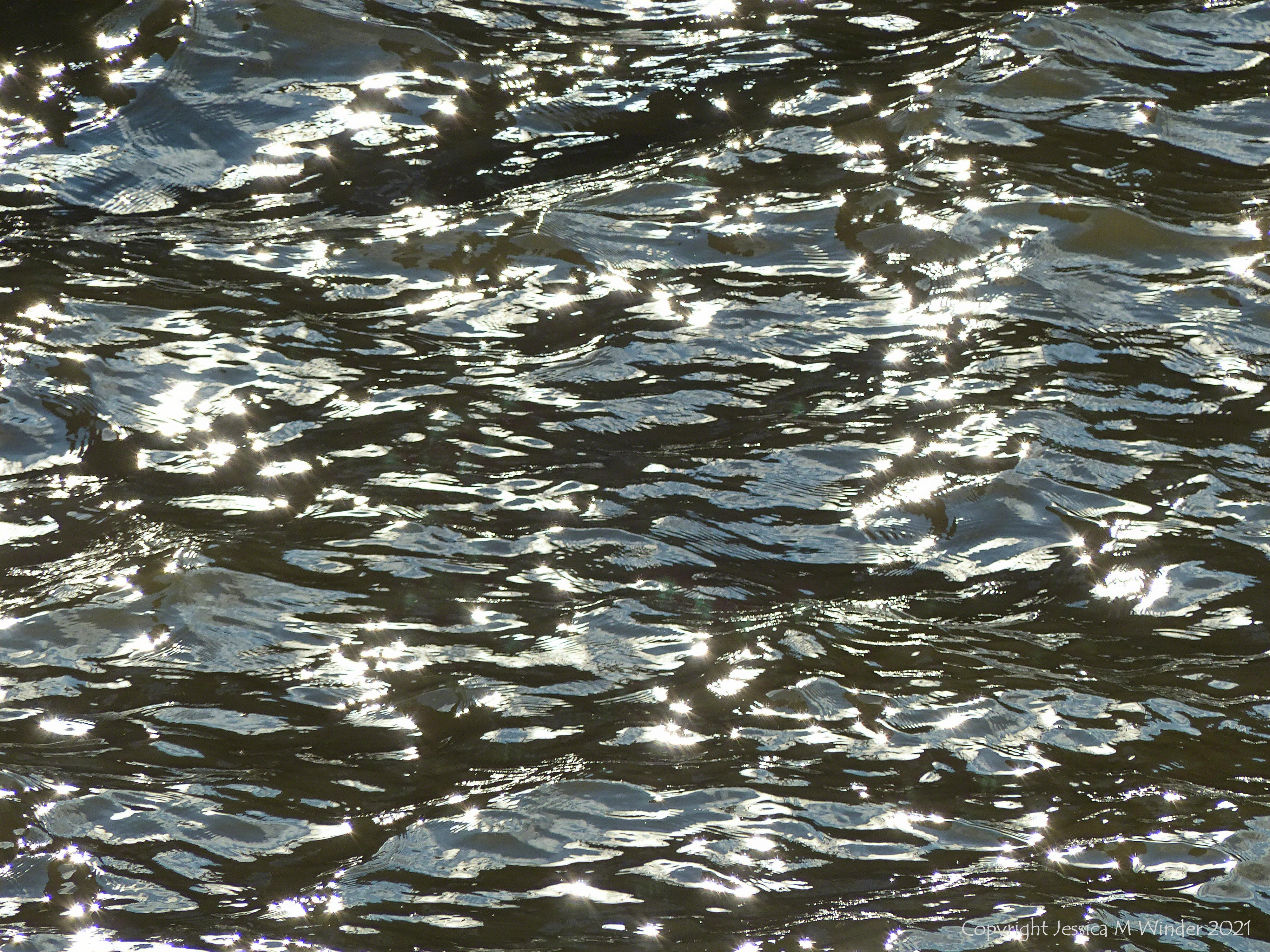 Natural abstract patterns of light reflected on the surface of deep flowing water in the tidal reaches of the River Thames in central London, October 2015