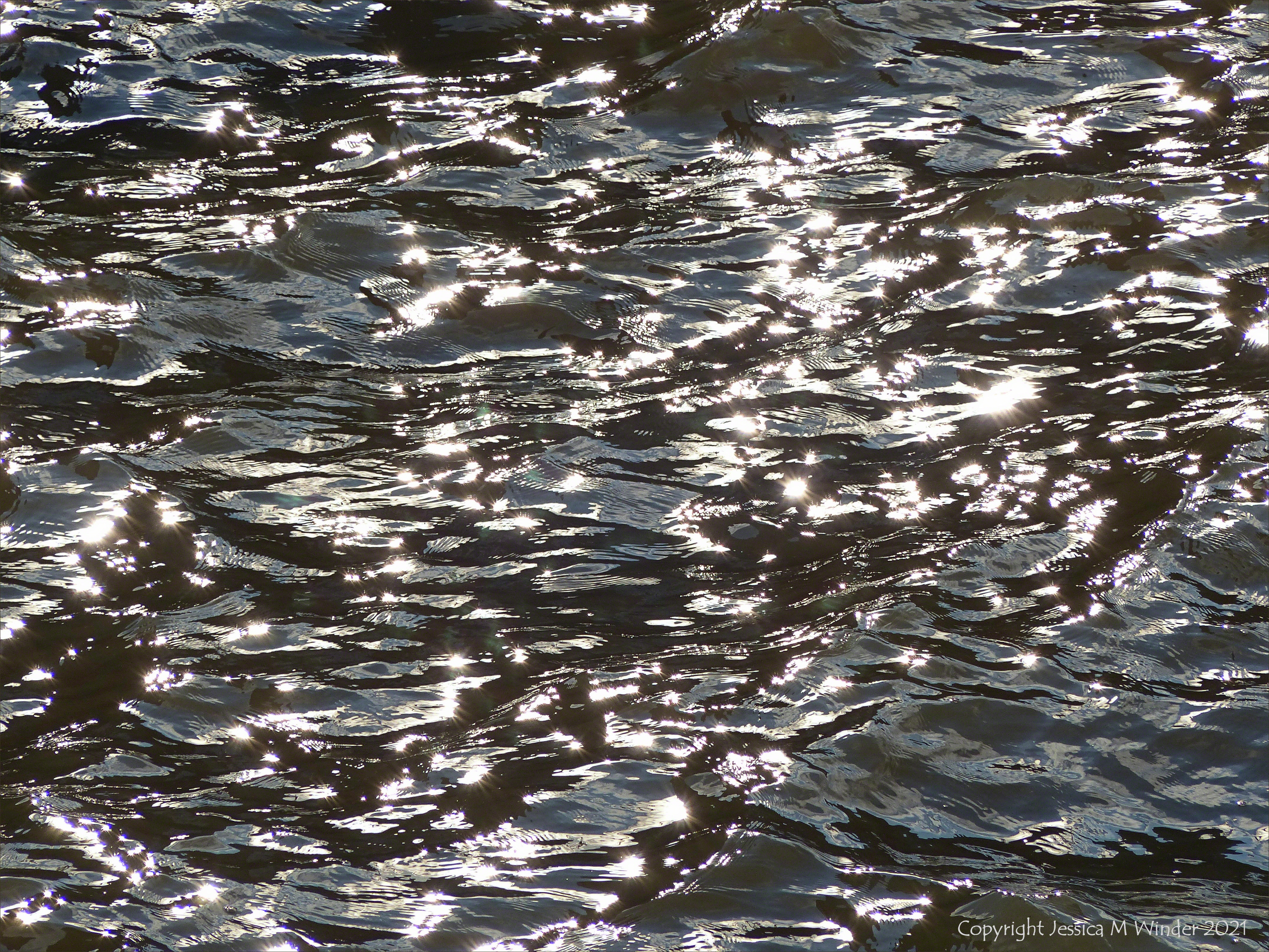 Natural abstract patterns of light reflected on the surface of deep flowing water in the tidal reaches of the River Thames in central London, October 2015