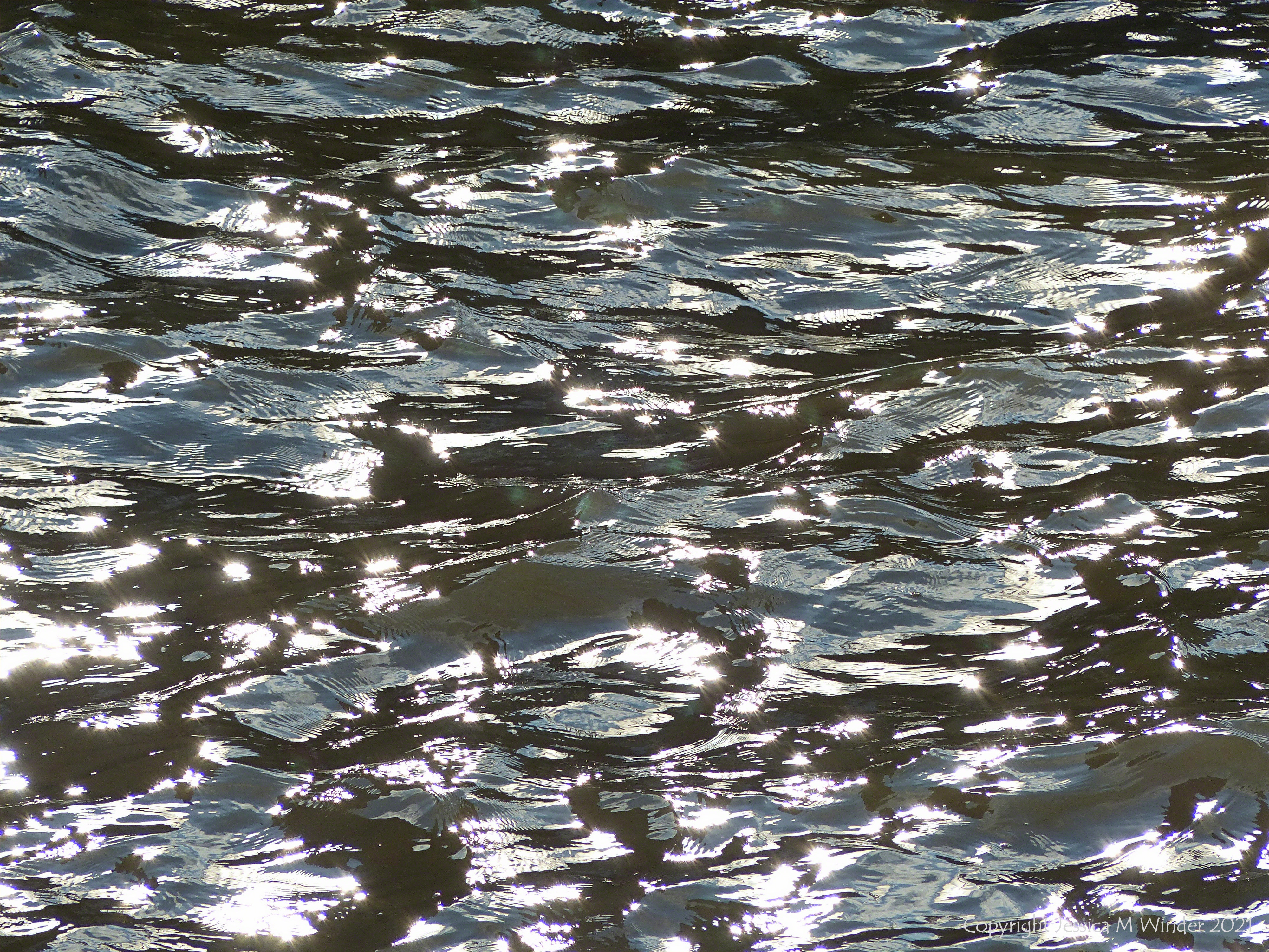 Natural abstract patterns of light reflected on the surface of deep flowing water in the tidal reaches of the River Thames in central London, October 2015