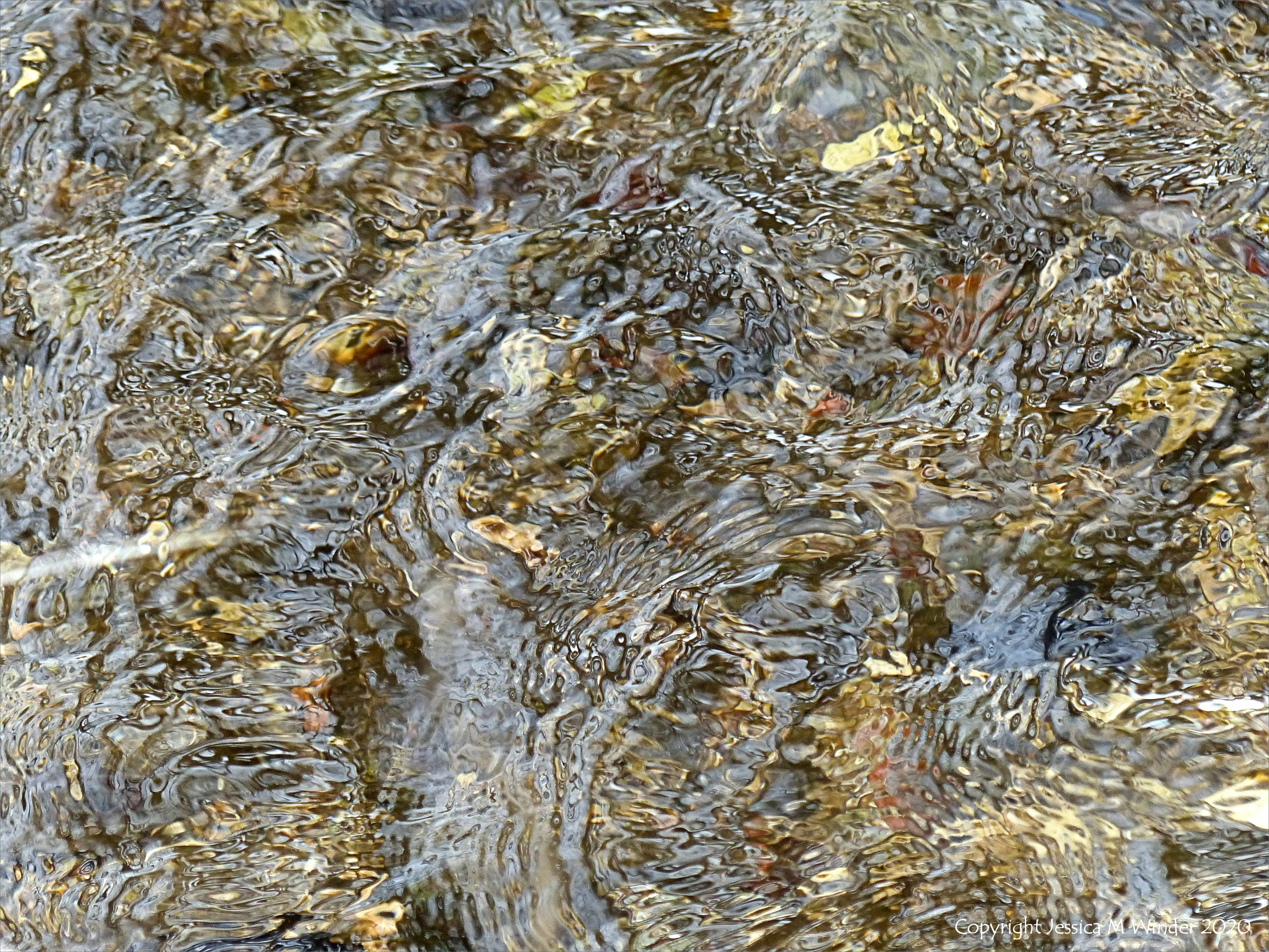 Close-up of pattern and texture in a fast flowing shallow river