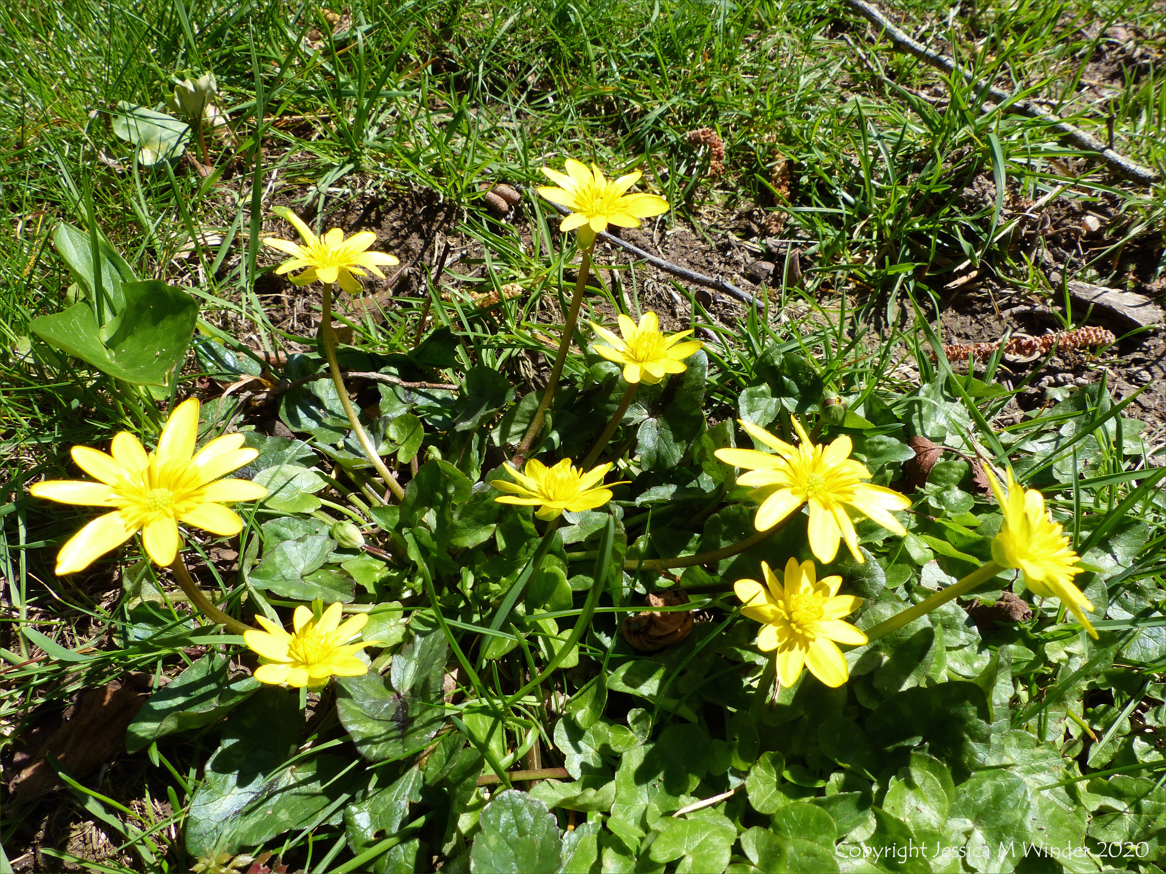Yellow flowers of Lesser Celandine (Ranunculus ficaria) in the English countryside