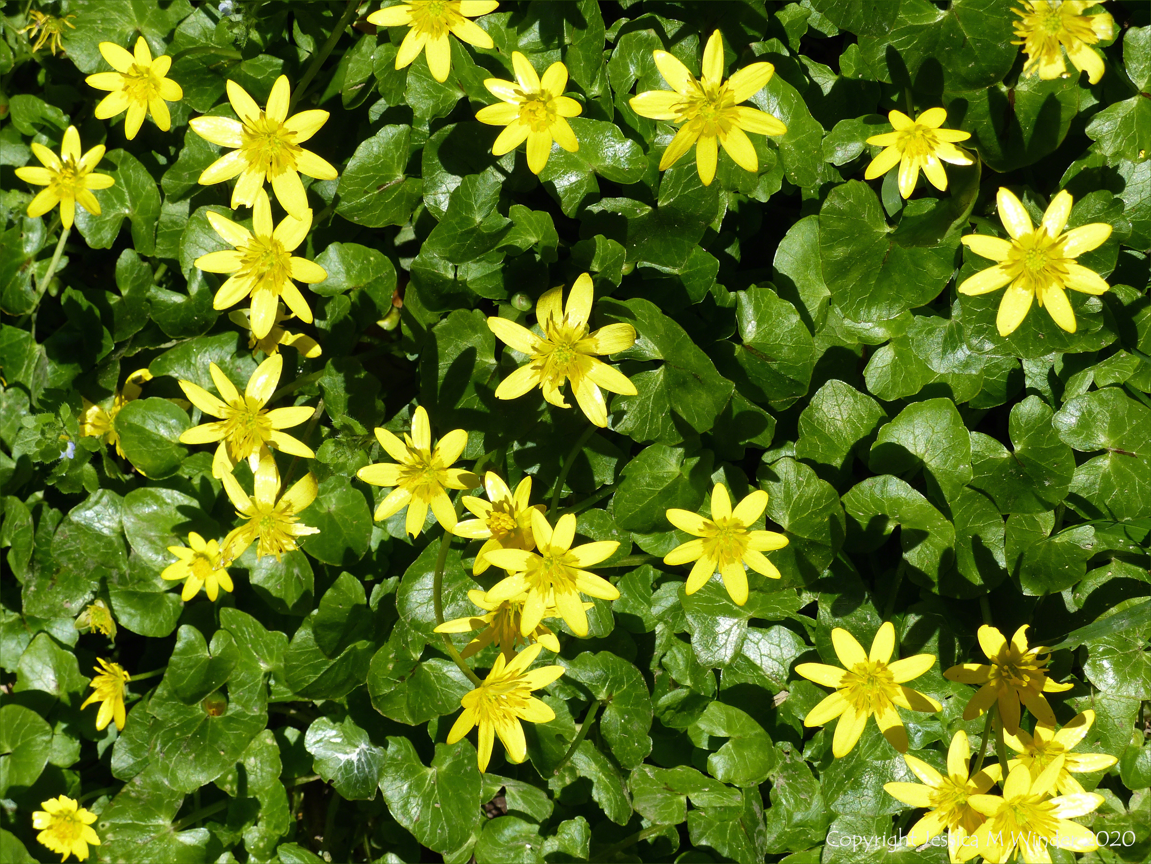 Yellow flowers of Lesser Celandine (Ranunculus ficaria) in the English countryside
