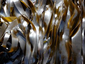 P1250098a Satin-textured olive-brown blades of kelp (Laminaria digitata) at Ringstead Bay, Dorset, UK – part of the Jurassic Coast (2)